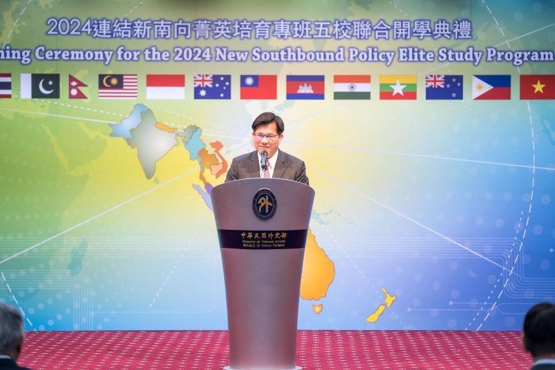 Foreign Minister Lin Chia-lung addresses participants during the 2024 New Southbound Policy Elite Study Program opening ceremony Sept. 13 at MOFA headquarters in Taipei City. (MOFA)