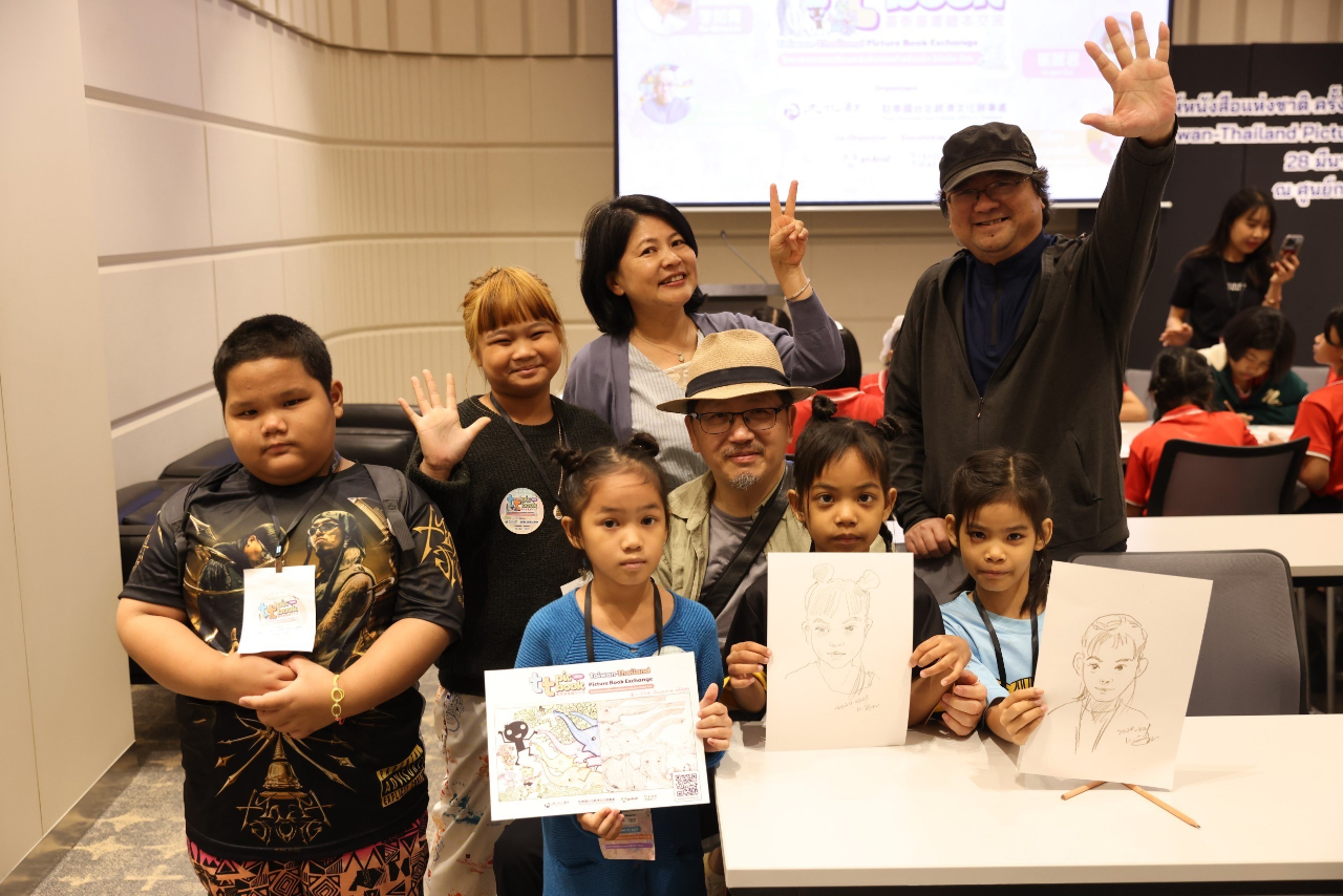 นักเขียนหนังสือภาพชาวไต้หวัน หลี่หรูชิง ชุ่ยลี่จุน เหยียนข่ายซิ่นร่วมกับนักอ่านตัวเล็กชาวไทยสัมผัสกับความสนุกของการวาดภาพ