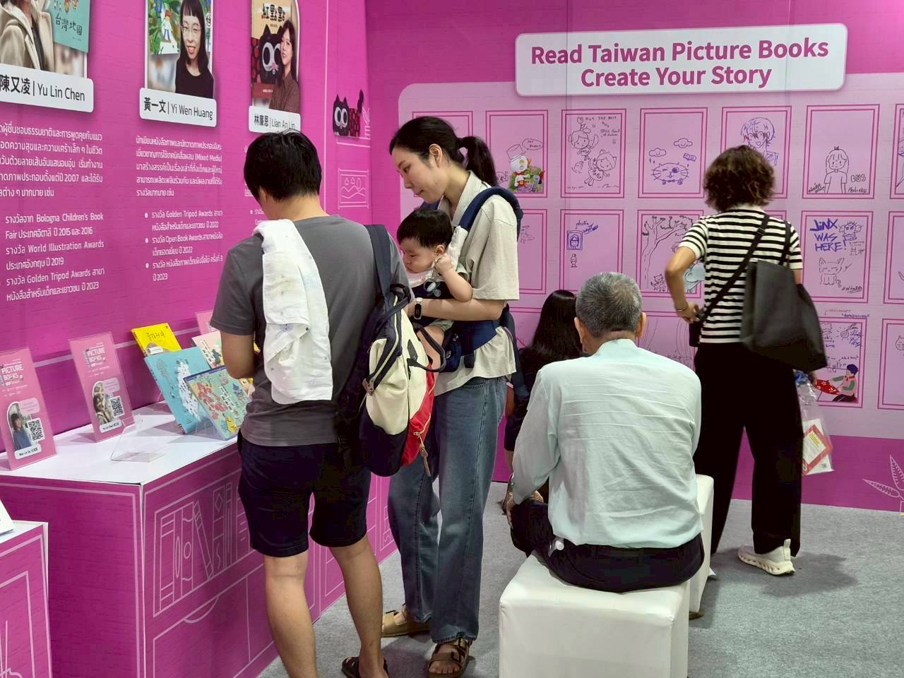 “บูทจัดแสดงหนังสือภาพจากไต้หวัน” ภายในงานสัปดาห์หนังสือฯ บูท F20 เปิดให้เข้าชมตั้งแต่วันที่ 26 มีนาคม ถึง 6 เมษายน รวมทั้งสิ้น 12 วัน โดยนอกจากจะจัดแสดงผลงานจำนวนมากของนักเขียนหนังสือภาพไต้หวันทั้ง 4 ท่านแล้ว ยังมีการจัดแสดงหนังสือภาพไต้หวันที่โดดเด่น เคยได้รับรางวัลจากในและต่างประเทศ รวมถึงหนังสือภาพที่ได้รับการแปลและตีพิมพ์เป็นภาษาไทยอีกด้วย ตัวบูทออกแบบภายใต้แนวคิด “บ้าน” ที่สื่อถึงการเปิดประตูต้อนรับเพื่อนชาวไทยให้มาเยี่ยมเยือนและผูกมิตรกันผ่านหนังสือภาพ ภายในบูทมี “กำแพงภาพวาด” เป็นพื้นที่เปิดและโปสการด์ธีมพิเศษ สำหรับให้ผู้อ่านชาวไทยสร้างสรรค์โลกแห่งเรื่องราวในแบบของตนเองหลังได้รับแรงบันดาลใจจากการอ่านหนังสือภาพจากไต้หวัน