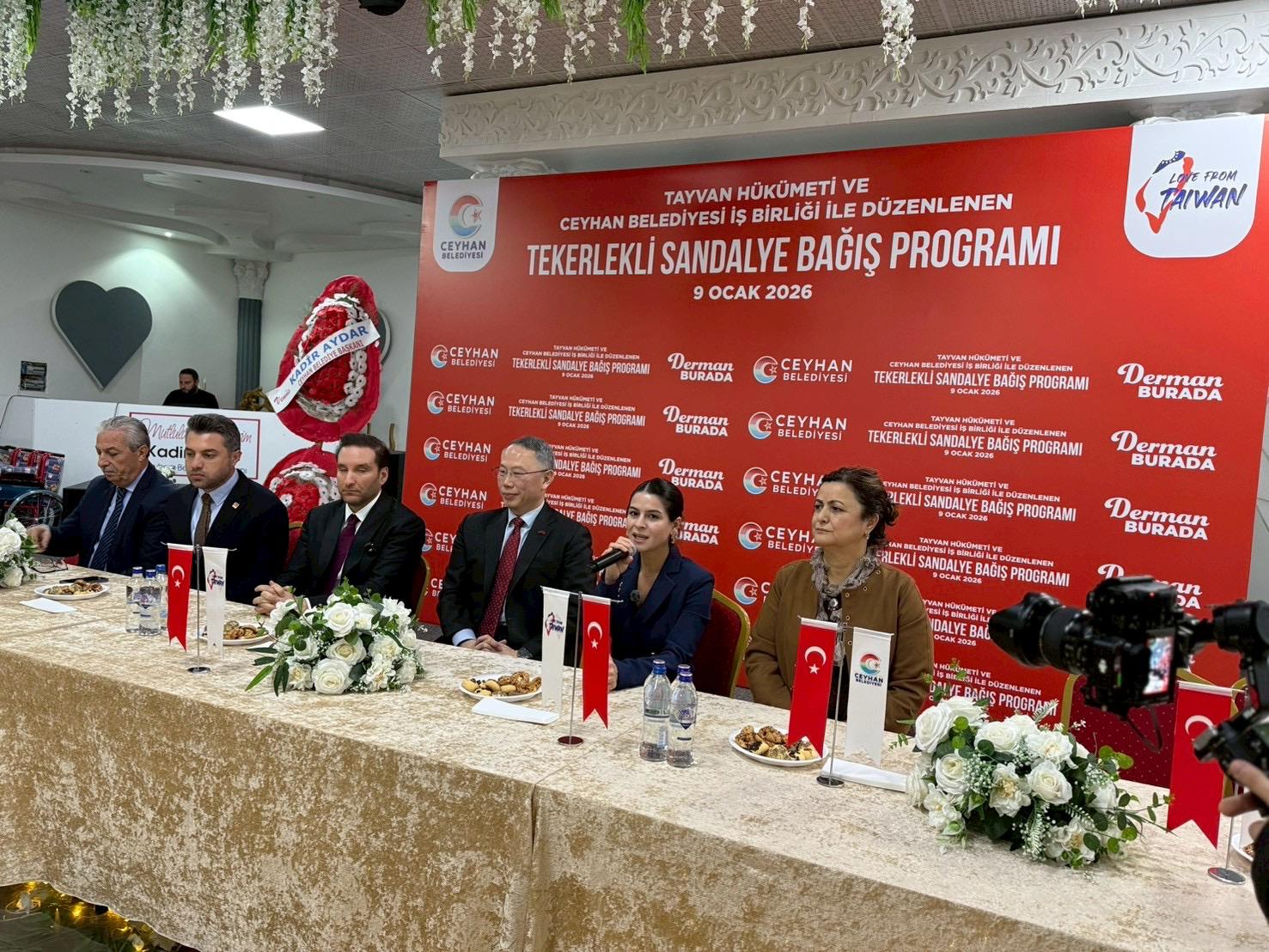 傑伊漢(Ceyhan)代理市長葉爾德絲(Sevil Aydar Yıldız,右二)在輪椅捐贈儀式上致詞表達對台灣善舉的感謝。