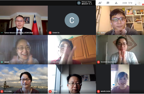 黃代表應土耳其僑務顧問周如意邀請,出席伊斯坦堡讀書會主辦的線上專題演講,由政治大學阿文系張景安助理教授主講,主題為「中東地區的歷史概況-土耳其的趨勢與發展」。 黃代表除了開場致詞外,也與僑胞熱烈討論土耳其難民等國際議題,大家收穫滿滿,相約下次線上活動再會!
