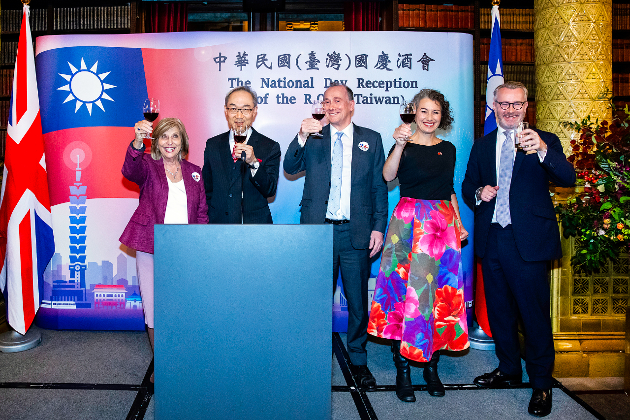 駐英國代表處姚金祥大使於10月8日晚間在倫敦「全國自由俱樂部」(National Liberal Club)主持113年國慶酒會,與英國各界人士同慶,包括英國國會下議院外交委員會主席Emily Thornberry下議員、台英國會小組共同主席Sarah Champion下議員、上議院前議長暨台英國會小組副主席Baroness D’Souza上議員、保守黨影子外交副大臣Lord Callanan、自民黨上議院外交事務發言人Lord Purvis等國會上、下議院跨黨派議員、友邦及理念相近國家駐英大使與駐英官員,以及英國各界人士近300名賓客出席共襄盛舉,氣氛熱烈。