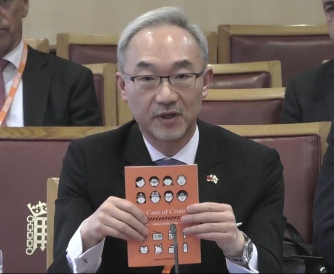 姚大使金祥出席英國國會「國家安全戰略聯合委員會」以「社會韌性」為主題舉行的聽證會。資料來源(Source):parliamentlive.tv