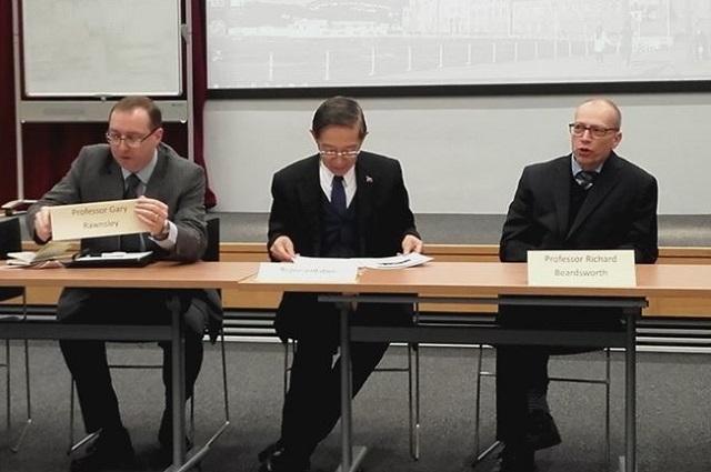 中華民國駐英代表林永樂於107年3月27日至29日赴英國亞伯利斯威市(Aberystwyth)轄訪,並參加駐英代表處與亞伯利斯威大學國際政治系「全球傳播研究中心」(Global Communications Research Center)於3月28日合辦之「公共外交暨台灣參與世界衛生大會之國際宣傳」(Public Diplomacy and Taiwan’s Campaign to Join the WHA)研討會,林永樂應「全球傳播研究中心」主任任格雷(Gary Rawnsley)教授之邀,與亞伯利斯威大學國際政治系系主任畢爾斯(Richard Beardsworth)教授共同主持研討會開幕式。