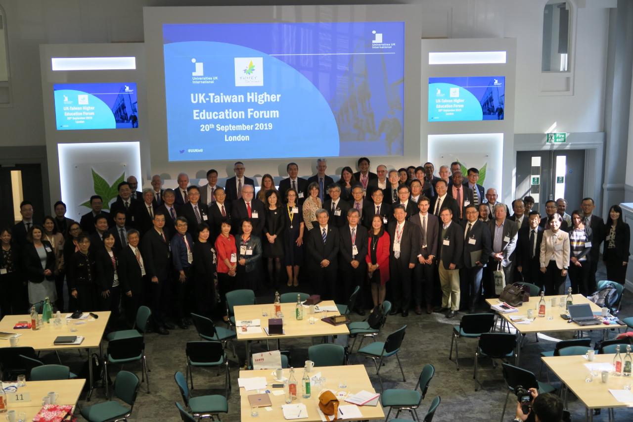 為深化臺英高等教育交流,提升我國高等教育國際競爭力,教育部劉政務次長孟奇率領17所大學,含10位 校長、8位副校長及國際長或研發長,財團法人高等教育國際合作基金會、財團法人高等教育評鑑中心共44人來英國倫敦,於9月20日與英國大學協會(Universities UK:簡稱UUK)合作舉辦「第一屆臺英高等教育論壇 (UK-Taiwan Higher Education Forum)」,英方由UUK前主席Professor Janet Beer女爵代表,來自英國各大學共有30校38人與會,其中有2位校長、3位副校長出席,成功建立臺英教育交流及合作平台。