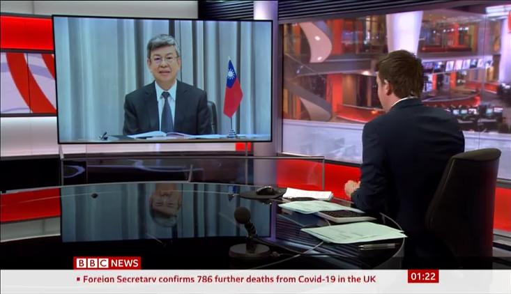 In a videoconference interview for the BBC "Newsday" program on the morning of April 8, Vice President Chen Chien-jen shared Taiwan's experience fighting the coronavirus disease 2019 (COVID-19) and answered questions about international cooperation to fight the pandemic.