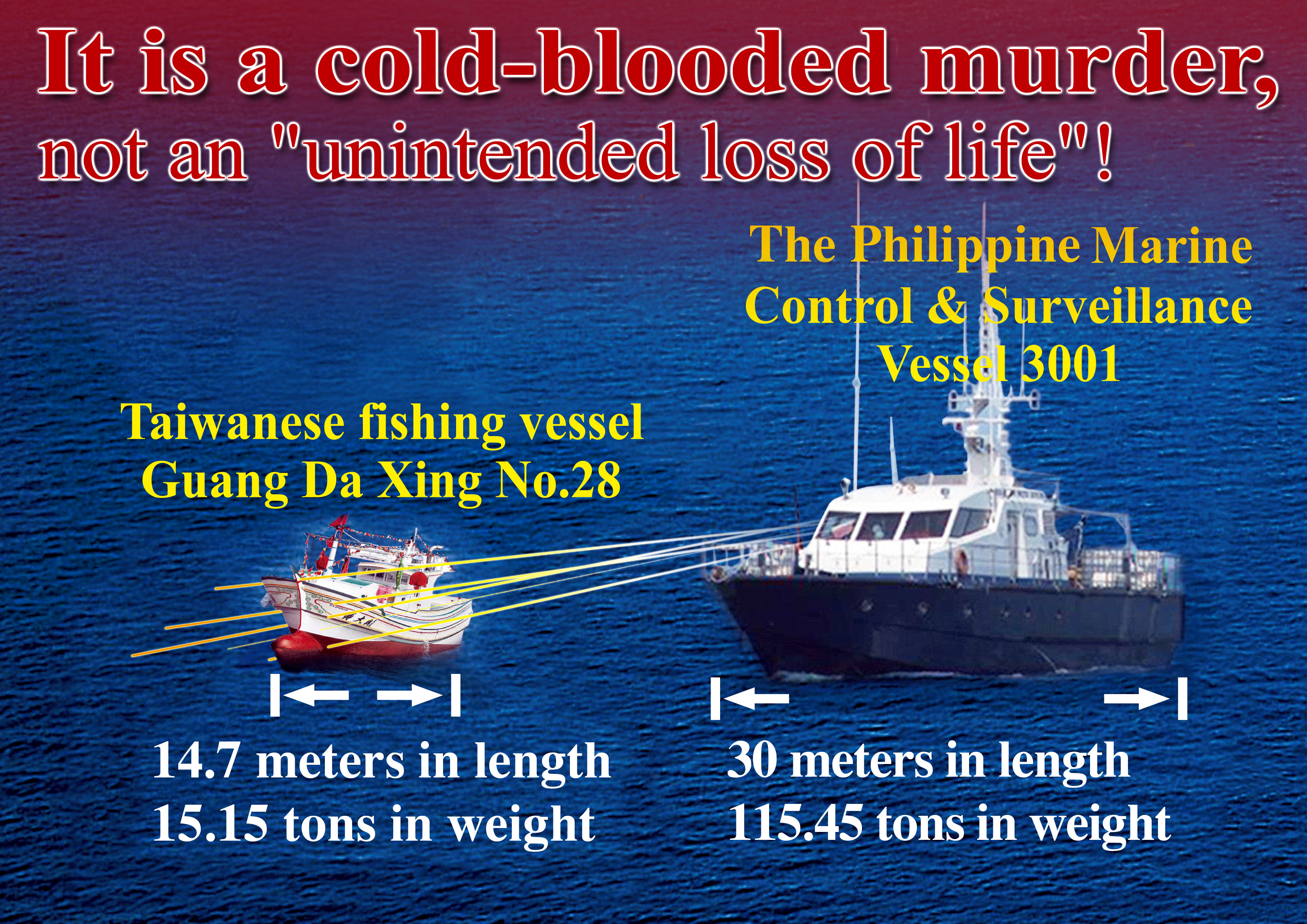3. The attack was perpetrated by a Philippine official vessel. As such, the Philippine government should be held responsible for Mr. Hong Shi-cheng’s death. The Philippine government must act in a positive and concrete manner as a responsible stakeholder in the international community.