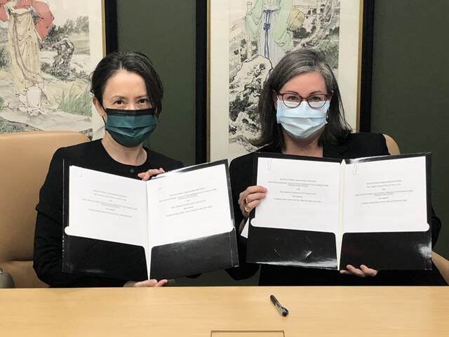 駐美代表蕭美琴大使於美東時間本(12)月15日下午與美國在台協會(AIT)執行理事藍鶯(Ingrid Larson)共同簽署「第二份在敘利亞部分地區進行穩定化援助協議」,國務院亞太局副助卿華自強(Rick Waters)及「全球反制ISIS聯盟」代理副特使Douglas Hoyt等多位美方資深官員參與見證。