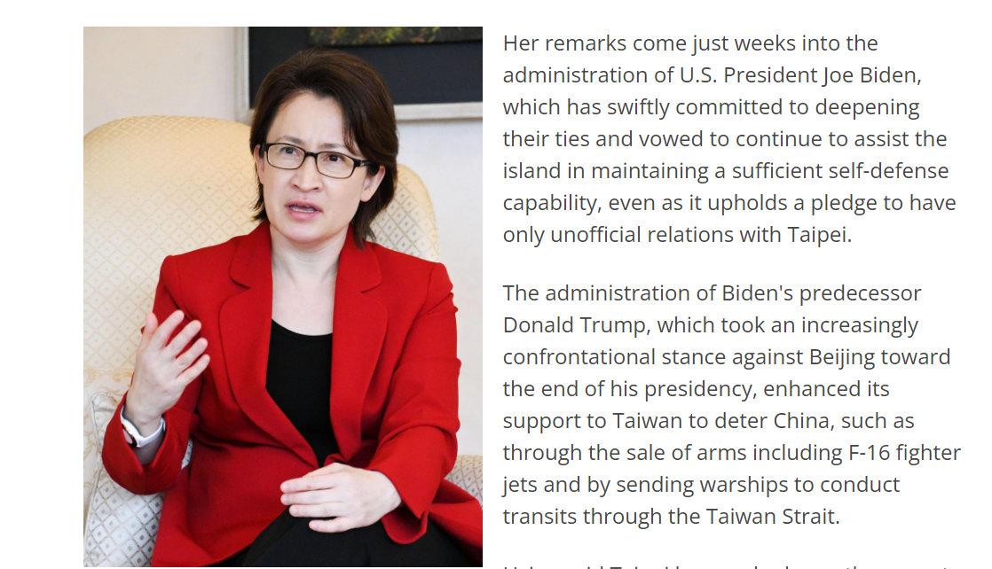 文章連結: Taiwan envoy hails ongoing U.S. support, warns of China's coercion
