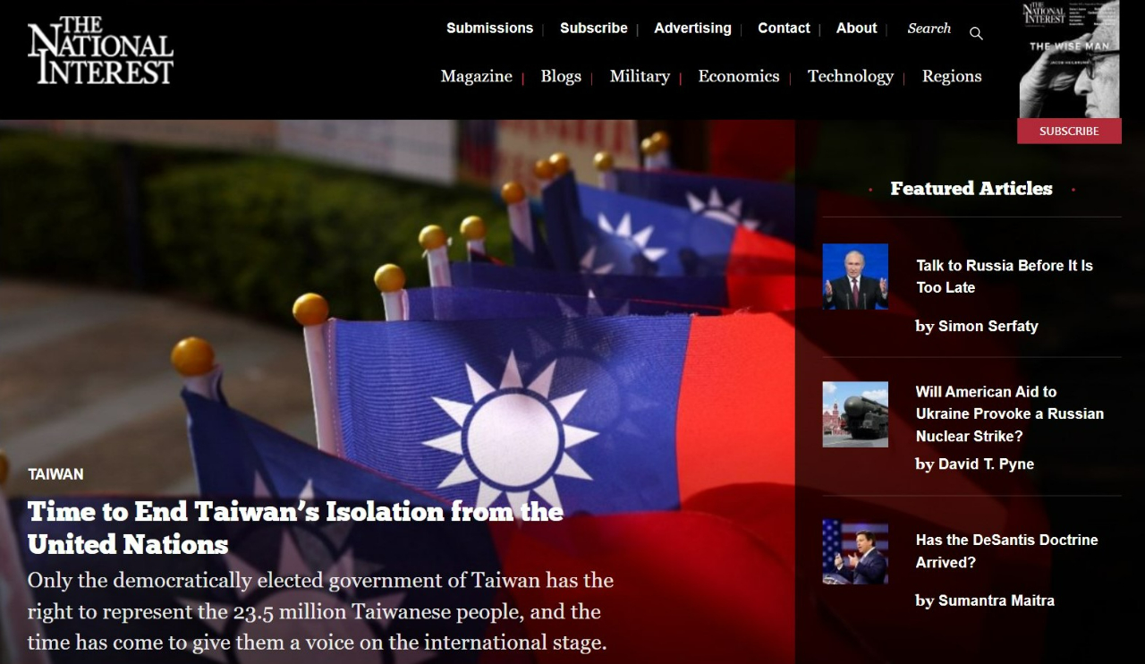 「國家利益」雜誌(The National Interest)於9月23日刊登本處蕭大使專文