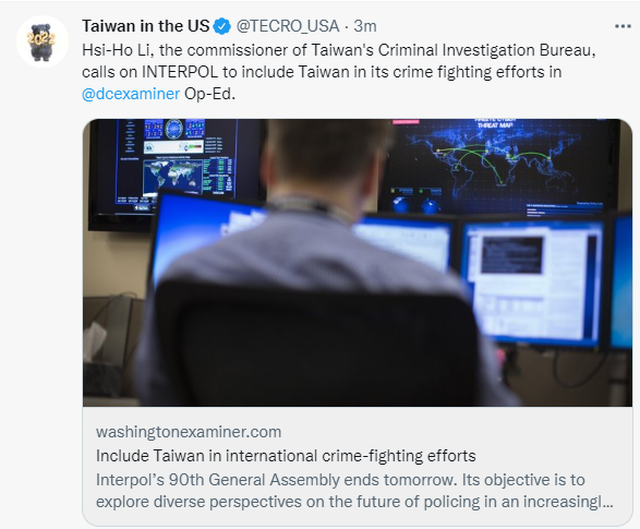 美國媒體「華盛頓觀察家報」(Washington Examiner)刊登內政部警政署刑事警察局局長李西河專文