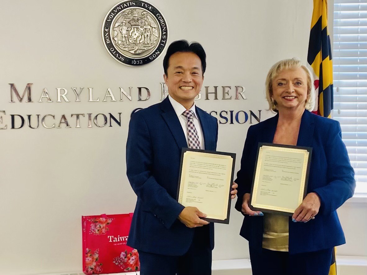 本(8)月14日本處鄭公使榮俊代表俞大使見證由教育部與美國馬里蘭州教育廳教育合作備忘錄續約簽署典禮。教育部由國際及兩岸教育司廖高賢司長代表簽署後,換文由馬州教育廳長Carey Wright於鄭公使及馬州當地政要共同見證下完成簽署,再度開啟雙方教育交流合作新篇章。