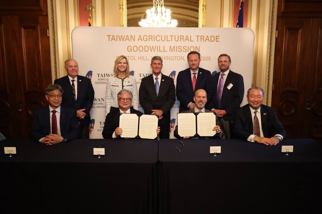 「2025年中華民國(台灣)農產品貿易赴美友好訪問團」(農訪團)於9月17日在國會山莊舉行採購意向書簽署儀式暨酒會,農業部長陳駿季、駐美代表俞大使大㵢及16位美國聯邦參、眾議員共同見證,我農訪團與美國穀物業者簽署三份採購意向書,規劃於2026年至2029年採購總價超過100億美元之美國黃豆、玉米、小麥及牛肉。