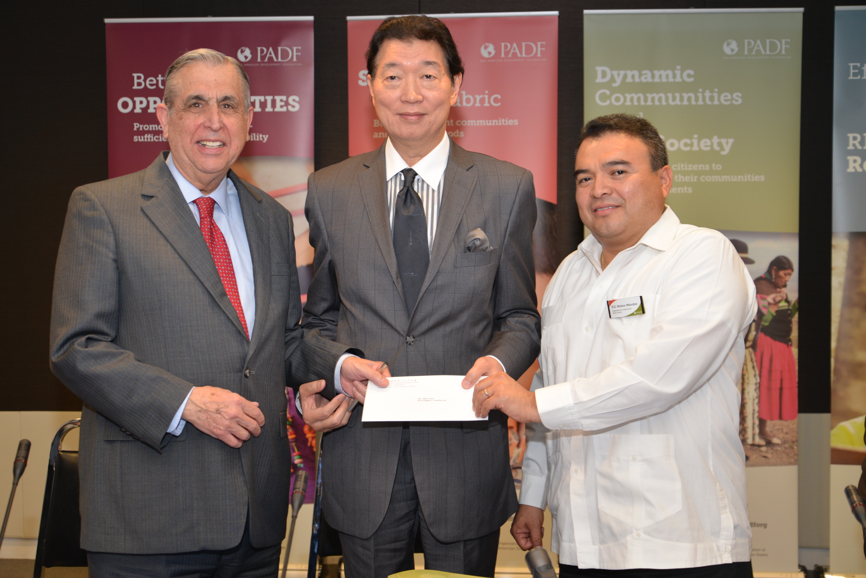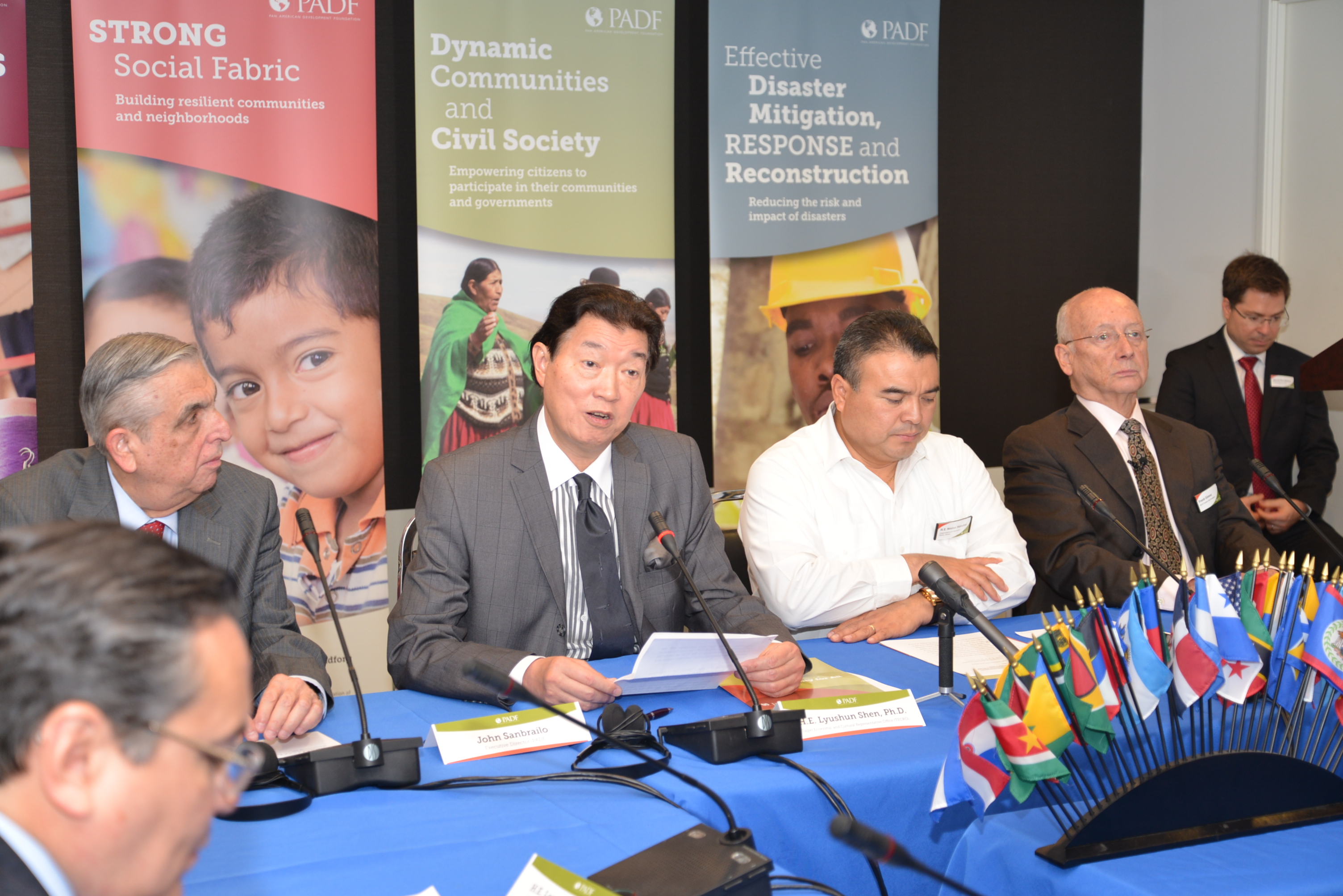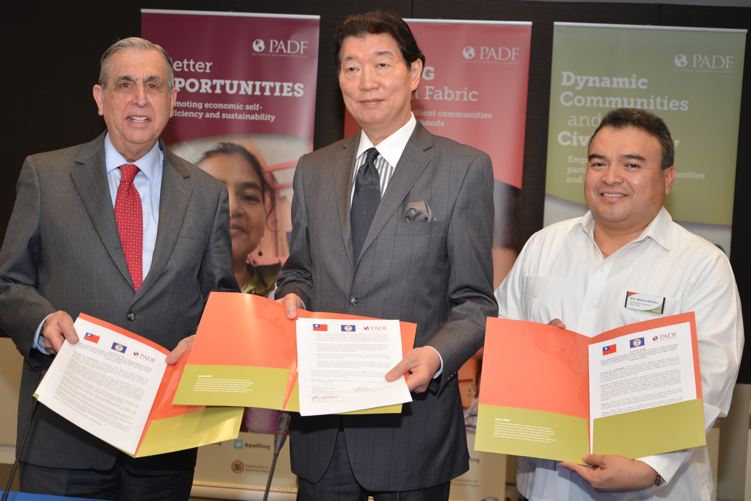 駐美國臺北經濟文化代表處代表沈呂巡大使於本(2015)年6月9日在「美洲國家組織」(OAS)總部,代表中華民國政府簽約捐贈50萬美元予「泛美發展基金會」(Pan American Development Foundation, PADF)進行「活力海岸社區:貝里斯社區災害準備及因應氣候變遷計畫」。 本日三方簽約暨捐贈儀式由沈大使、PADF執行長John Sanbrailo及OAS新任副秘書長當選人、貝里斯駐美國大使兼駐OAS常任代表Néstor E. Méndez共同簽署合作協議。沈大使嗣正式遞交捐款支票予Sanbrailo執行長及Méndez大使。 PADF執行長Sanbrailo首先致詞表示,該基金會甚感榮幸與中華民國(台灣)政府及人民合作,共同協助中南美洲及加勒比海國家建立因應自然災害及氣候變遷之能力,並感謝我捐款。PADF前任會長、前美國務院公共事務副助卿Frank Gómez致詞則指出,本年稍早見證台灣與PADF合作防治伊波拉,本日再度見證中華民國(台灣)政府提供國際貢獻之堅定承諾及其人民的慷慨義舉,深表感謝。 沈大使致詞時指出,中華民國(台灣)政府自2012年起與PADF合作成立為期五年、總額250萬美元的「災害援助及重建基金」,迄已協助海地、宏都拉斯及聖文森等國近28萬民眾、2,400戶家庭及逾50個社區提升災害防治及因應氣候變遷能力。本年預期亦將嘉惠逾萬名貝國人民強化相關能力。 沈大使續指出,本(6)月1日台美甫簽署「全球合作暨訓練架構」(GCTF)備忘錄,共同提供其他國家訓練課程及活動,強化台美人道援助、公共衛生及其他全球議題合作,深盼台美GCTF倡議可使台灣與PADF之合作計畫更增實益與意義。我國已自過去國際援助接受者轉變為國際援助之提供者,感謝PADF協助台灣對真正有需要之國際友人提供深具意義之國際貢獻。 即將接任OAS副秘書長之貝里斯駐美國大使Méndez致詞時特別感謝我國本年度捐款嘉惠貝國人民,台灣厥為受中南美洲國家欽佩之堅實友邦。我友邦宏都拉斯駐OAS常任代表Leonidas Rosa Bautista大使、聖文森駐OAS副常任代表Omari Seitu Williams均相繼發言感謝我國與各國進行教育、衛生、農業等合作計畫及人道援助工作,深入嘉惠各國人民。 本日出席儀式來賓尚包括美國在臺協會執行理事唐若文(Joseph Donovan)、美國務院官員、薩爾瓦多駐美大使、巴拉圭、聖露西亞駐OAS官員等,共計約50位。