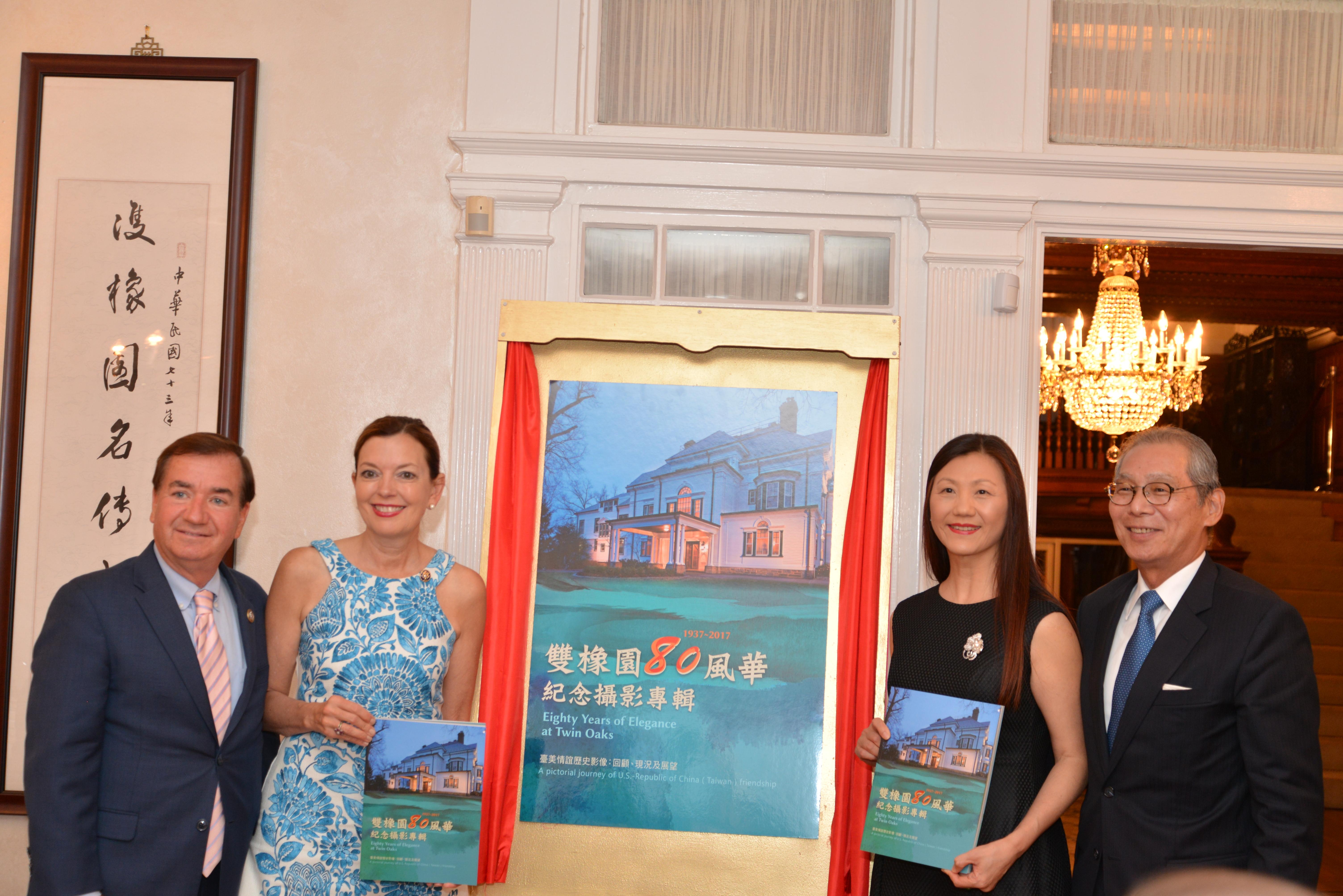 中國民國駐美代表處高碩泰大使夫婦與國泰慈善基金會董事長錢復夫婦於7月11日晚間共同為「雙橡園80風華紀念攝影專輯」出刊揭幕,這是駐美國代表處慶祝中華民國政府使用雙橡園80週年系列活動的重頭戲,藉以回顧兩國關係發展軌跡,更前瞻未來,盼能繼續開創無數個絕代風華。
