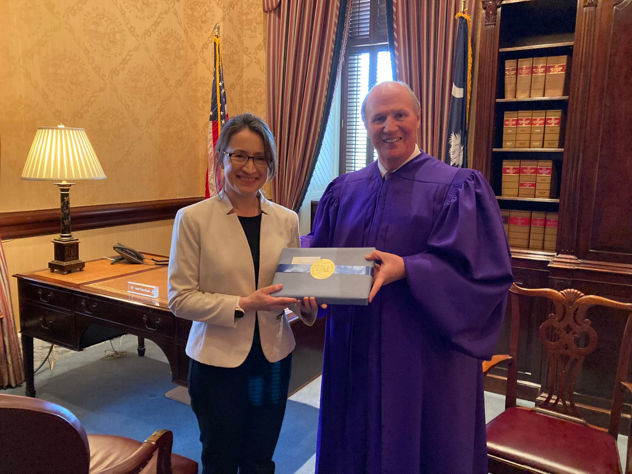 蕭大使於美東時間2月8日受邀見證南卡羅萊納州參、眾議會分別通過友台決議案,獲參、眾議長特別介紹及全體議員熱烈歡迎,表決前並會晤參議長Thomas Alexander;另受邀出席南卡州眾議會共和黨黨團午餐會並致詞,獲現場90餘位政要及議員全體起立鼓掌致意,也和與會的州長Henry McMaster、副州長Pamela Evette及眾議長James Lucas見面致意。蕭大使拜會期間,與政要們就就台美關係進展及我和南卡州合作議題廣泛交換意見。