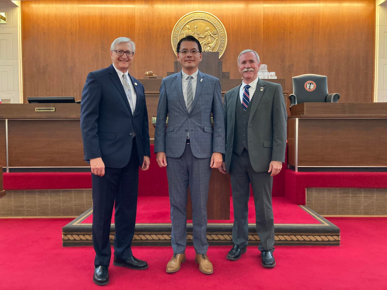 北卡羅來納州參、眾議會本週一致通過友台聲明,分別由參議員Ted Alexander及眾議員Dennis Riddell協助提案,順利將美東南6州議會友台聲量最後一塊拼圖完成,展現北卡州堅定友台力量,駐亞處王處長也特別前往北卡州議會議場見證議員們對臺灣的支持,會後也特別邀請議員、僑界共同出席「東南區州議會臺灣連線」酒會,與議員們暢談臺灣與北卡州交流的合作議題。