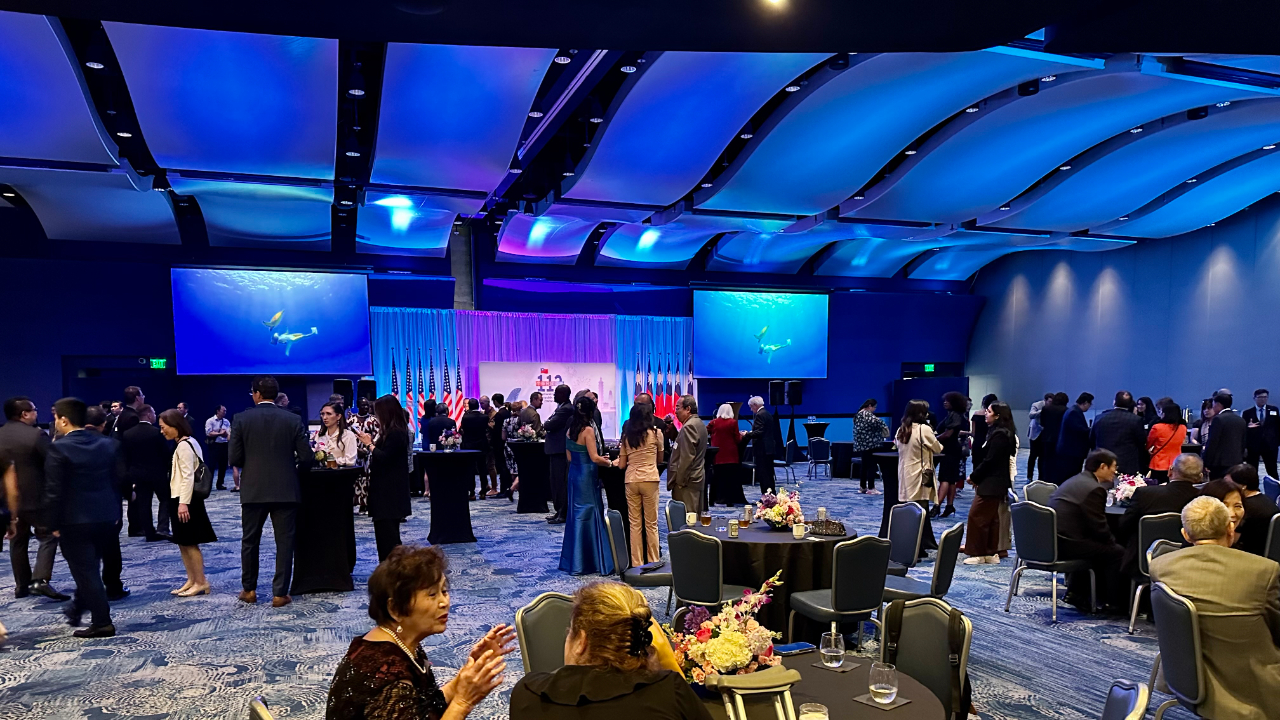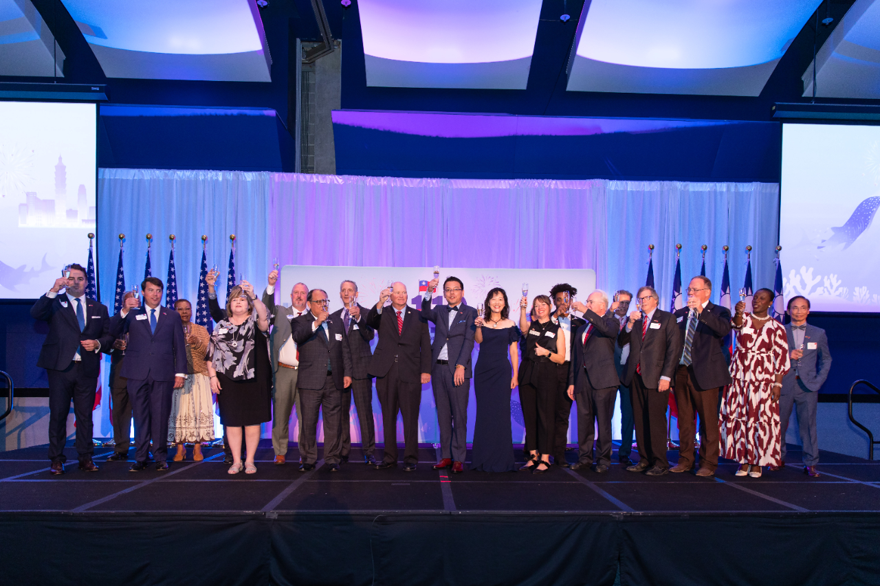 南卡州務卿漢姆德致詞表示南卡自1981年與台灣締結姊妹州關係後,雙方持續推動經貿和教育文化合作,並稱他過去曾兩度訪台,對台灣的民主發展及公民政治參與印象深刻。水族館代表也上台致詞稱很高興此次盛宴能在水族館舉行,館方自鯨鯊運抵以來,已與台灣建立起長年合作關係,並稱將持續與海洋大學合作進行相關研究。最後王處長伉儷邀請美國東南區政要及領事團上台共同祝酒及合影。