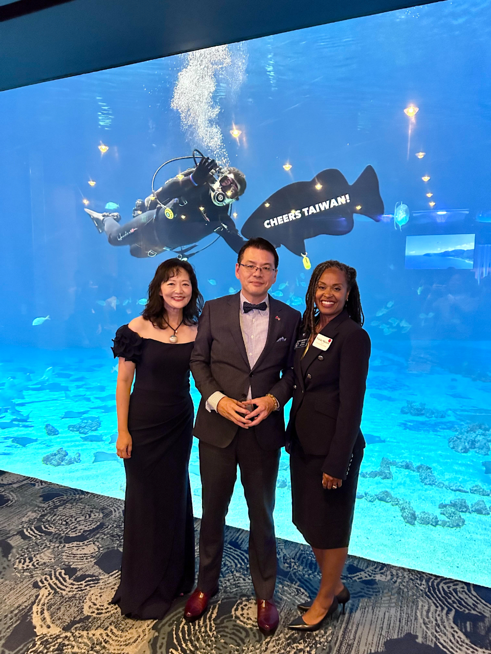 喬治亞水族館是全美最大水族館,「玉山」及「太魯閣」自2007年運抵亞特蘭大後,特別受美國民眾喜愛,成為鎮館之寶。國慶酒會當晚,水族館還特別在水族箱內排出「雙十」圖案,派潛水員下水舉著寫「台灣加油」(Cheers Taiwan!)的牌子,並播放和亞處協力推出的宣傳影片,肯定台灣在鯨鯊及海洋保育的貢獻,及該館長年與我國立台灣海洋大學的合作(在水族館長期播放,影片網址:https://fb.watch/n0pjKG-gZg/)。這次晚宴還邀請喬治亞理工學院合唱團“Georgia Tech Chamber Choir” 演唱中華民國及美國國歌,現場還備有拍立得照相棚、台灣啤酒及美食佳餚,賓主盡歡。