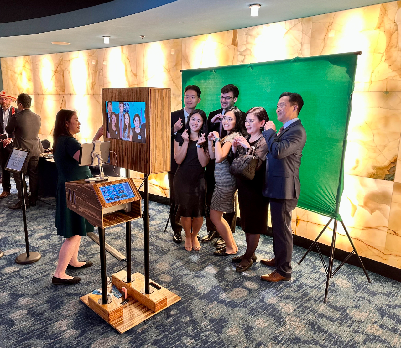 照片4: 國慶酒會賓客在拍立得照相棚合影留念