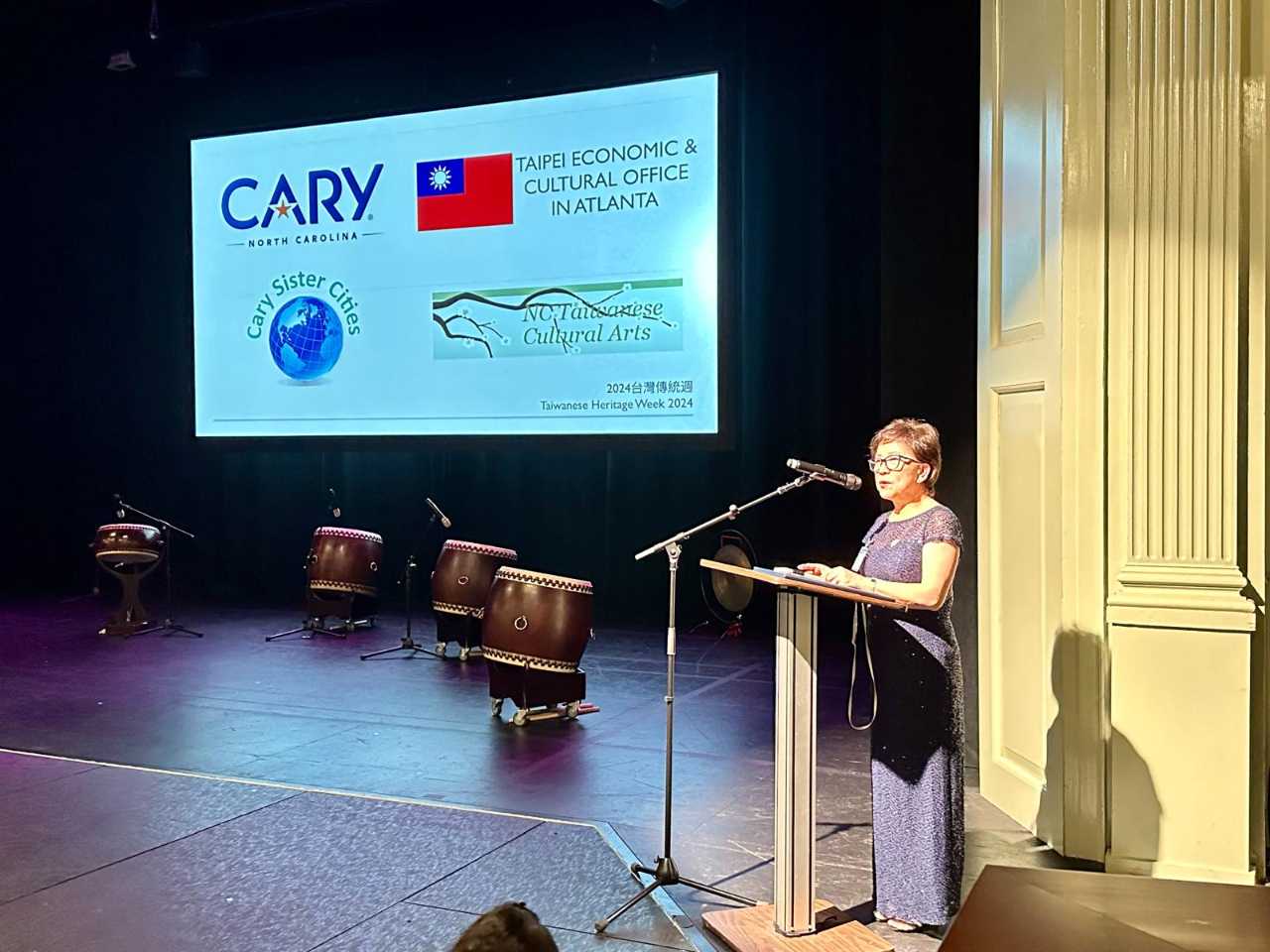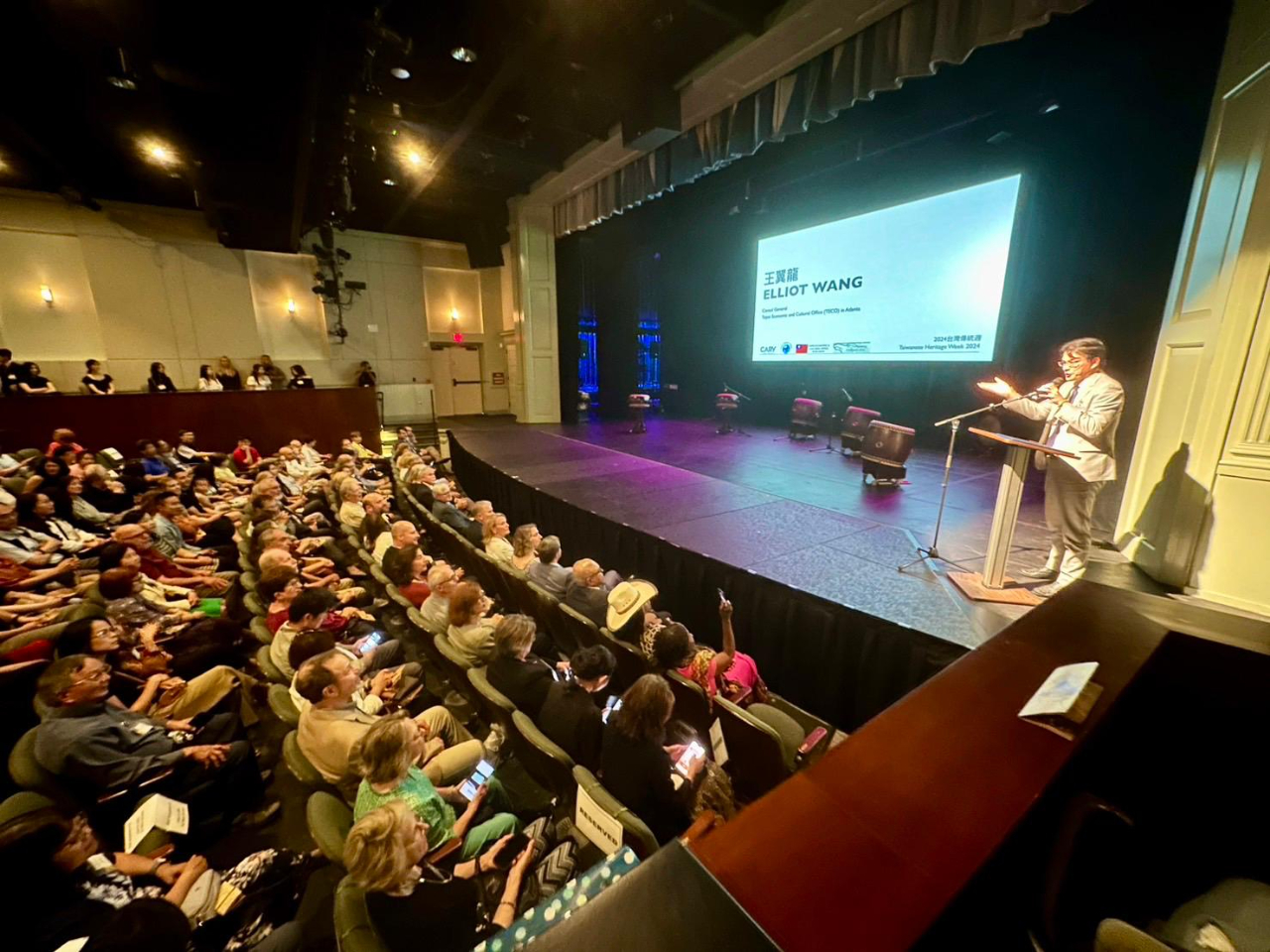 人氣爆棚!十鼓擊樂團來到美國北卡羅萊納州凱瑞鎮(Cary)「震撼」演出,北卡政要及民眾近400位到場熱烈支持,包括2位台灣連線共同主席、9位州參、眾議員及代表,與姊妹市鎮Cary、Kernersville及友好城市Morrisville與Apex,台上表演轟動如雷,台下觀眾尖叫聲不斷! 演出前特別邀請王處長、北卡州議會台灣連線共同主席Ted Alexander與Dennis Riddell致詞,強調五月第二週是美國的台灣傳統週及台美文化交流重要性。