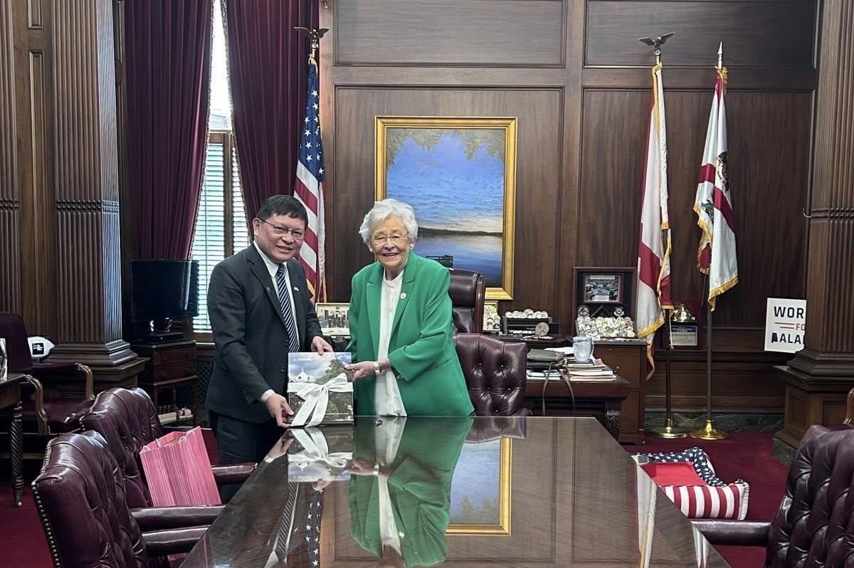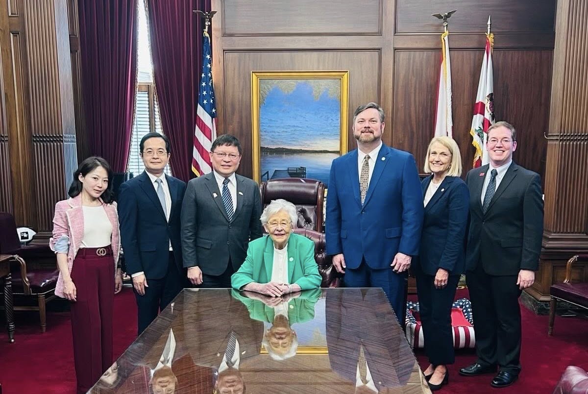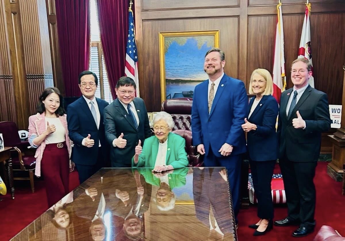 本處林主恩處長拜會阿拉巴馬州州長Kay Ivey及經貿發展廳廳長Ellen McNair,就台阿雙方在經貿、投資及教育等領域的合作深入交換意見。 雙方均表示願持續推動雙邊交流,強化互惠合作關係,為未來的長期夥伴關係奠定堅實基礎。