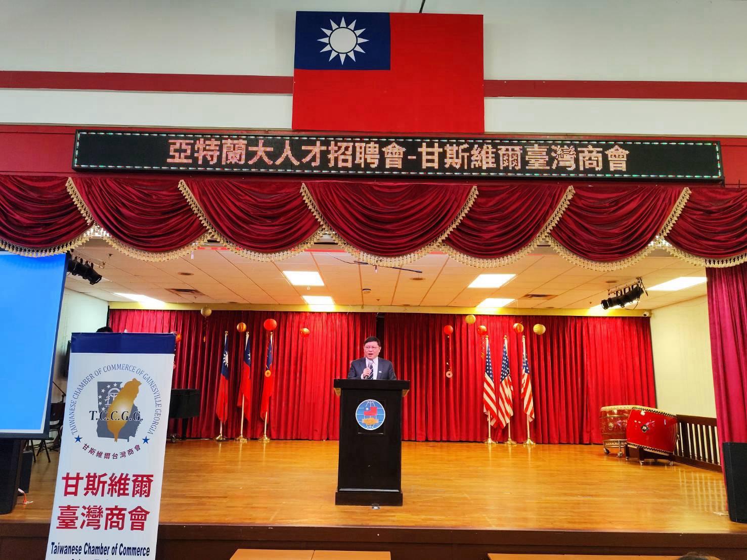 本處處長林主恩偕經濟組組長唐永興與僑教中心主任閻樹榮於2026年2月28日參加甘斯維爾台商會主辦之「亞特蘭大人才招聘會」,本次招聘會現場與會台籍與外籍學生求職者200餘人,多家台灣企業與求職人才進行面對面徵才與職涯交流,包括富士康工業富聯、廣達電腦、融程電訊、宏遠紡織等台灣企業與美國簽證法律顧問等皆來設攤招攬台裔留學生、在職人士及應屆畢業生。