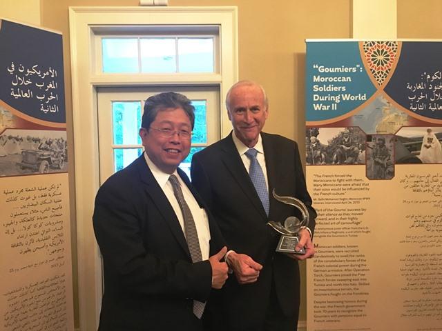 圖一: 劉處長與Global Public Service Prize得獎人Craig Lesser合影並就獎勵學術研究交流交換意見。