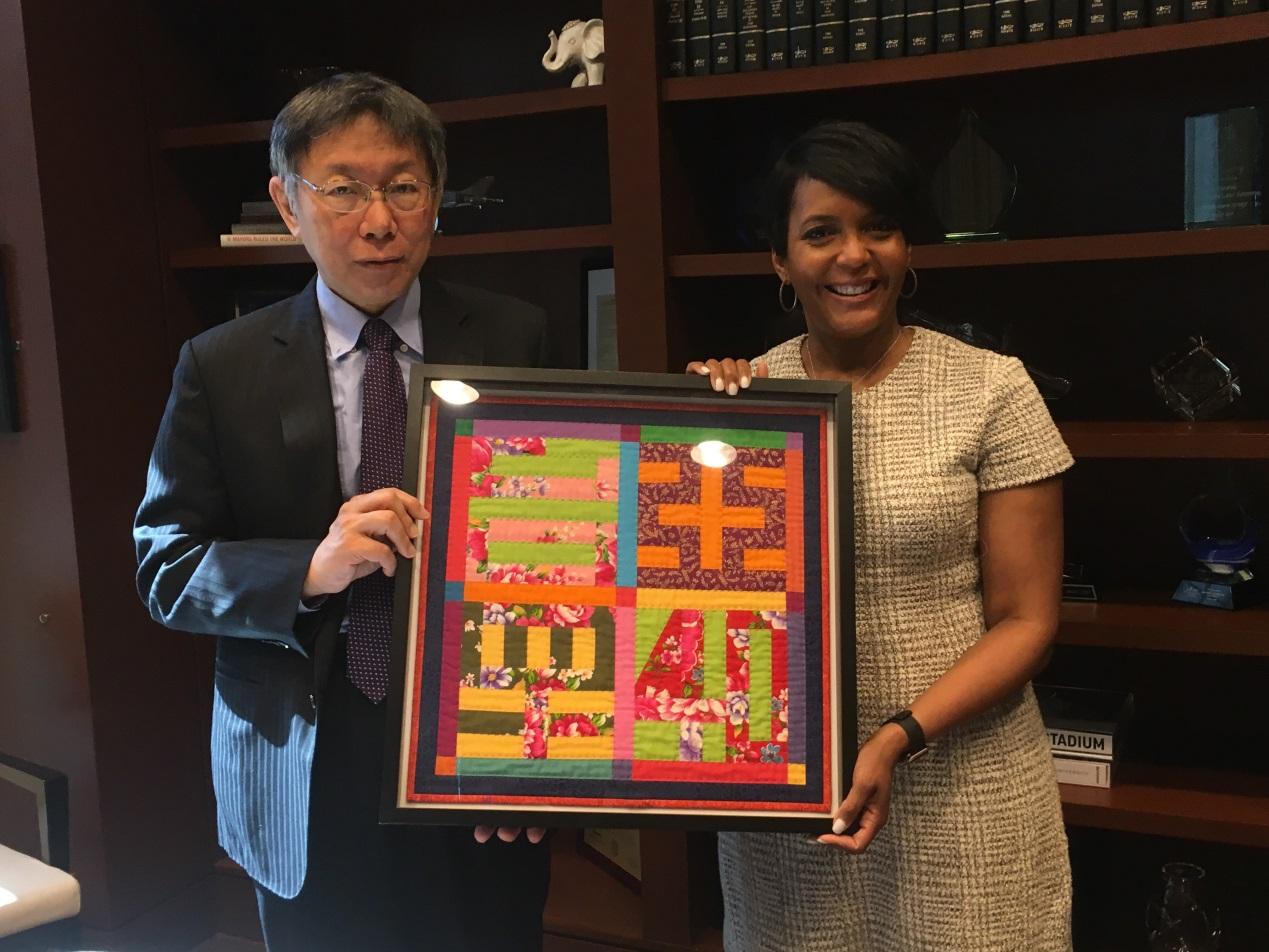 1. 臺北市柯文哲市長致贈亞特蘭大Keisha Bottoms市長慶祝姊妹市40週年藝術拼布