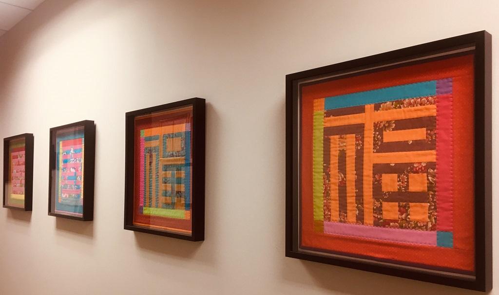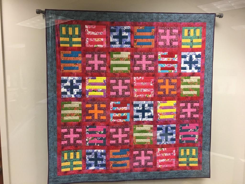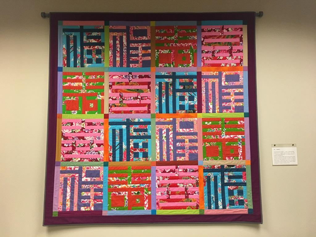 經過學習與練習,我選擇走一條比較簡單的路,用布條拼漢字,居然在 Houston international quilt festival活動中入選,讓我信心大増,我送了亞特蘭大經文處一張入選的‘四喜’拼布。