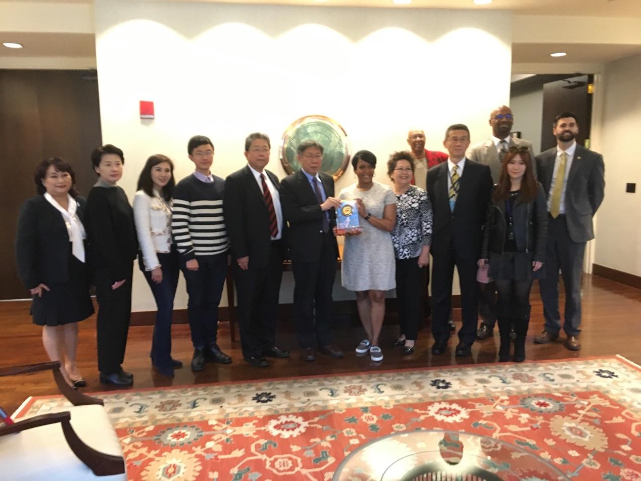 Taipei Mayor Ko, Wen-je visited Atlanta to celebrate the Taipei-Atlanta Sister Cityhood 40th anniversary. Mayor Ko was accompanied by Director General Vincent Liu of the Taipei Economic and Cultural Office in Atlanta to meet with Atlanta Mayor Keisha Lance Bottoms on March 21. The two mayors exchanged views on investment and cooperation, and each hoped there would be more business opportunities and cultural exchanges in the future. They reconfirmed the strong friendship ties between Atlanta and Taipei, and said they knew the relationship would continue to grow in the future.