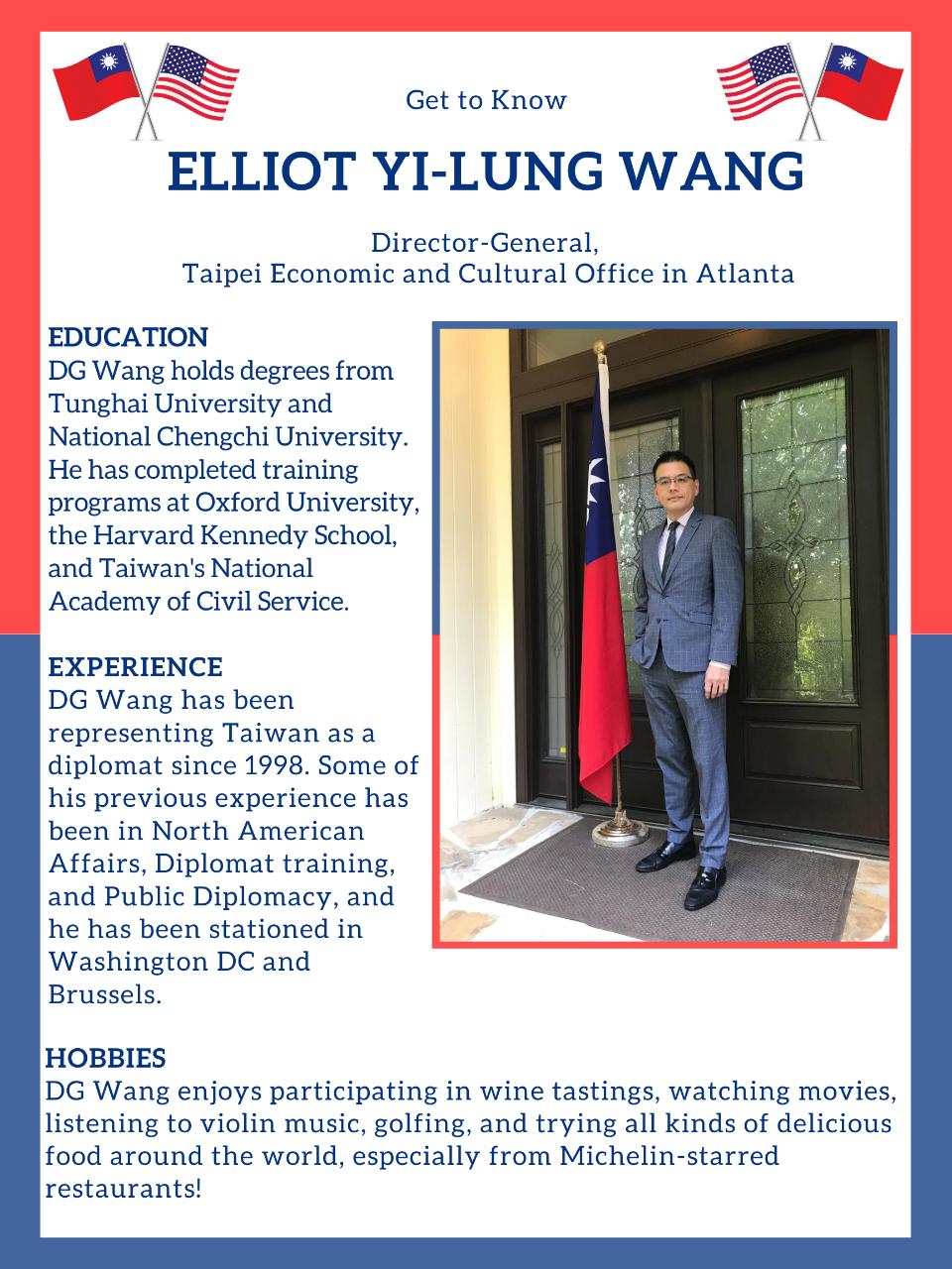 Our new Director-General, Elliot Yi-Lung Wang, just arrived in Atlanta on July 9th. Get to know him below:
