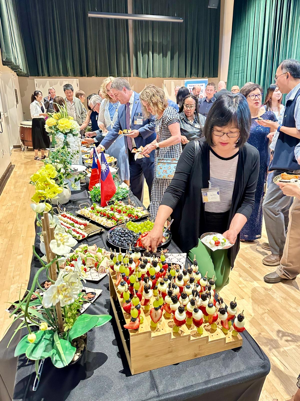 Before the performance by the Tendrum Art Percussion Group, the North Carolina Taiwan Art Association held a VIP reception featuring sumptuous Taiwanese food and snacks: Boba Milk Tea, Taiwanese Salty Crispy Chicken, Pineapple Cakes, Moon Cakes, and Mung Bean Pastry. The VIPs enjoyed a sensory feast, delighting in the visual, auditory, and culinary experiences, making for an immersive encounter with Taiwanese culture.