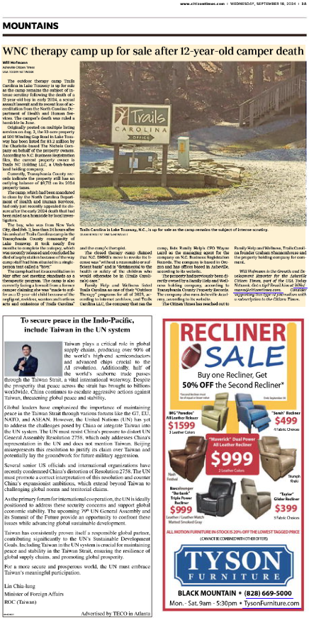 Minister of Foreign Affairs Lin Chia-lung wrote an article titled "To secure peace in the Indo-Pacific, include Taiwan in the UN system" which was published in the Asheville Citizen Times