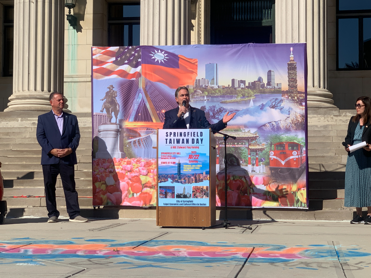 駐波士頓台北經濟文化辦事處與春田市政府於美東時間本(10)月22日上午11時合辦2022年春田台灣日暨升旗活動」,逾200名麻州台灣鄉親及當地市民齊聚,麻州春田市市長Domenic J. Sarno及麻州眾議會出口發展委員會主席Angelo J. Puppolo, Jr.親自出席表示支持。我國旗在國旗歌聲中冉冉升起,場面熱烈。