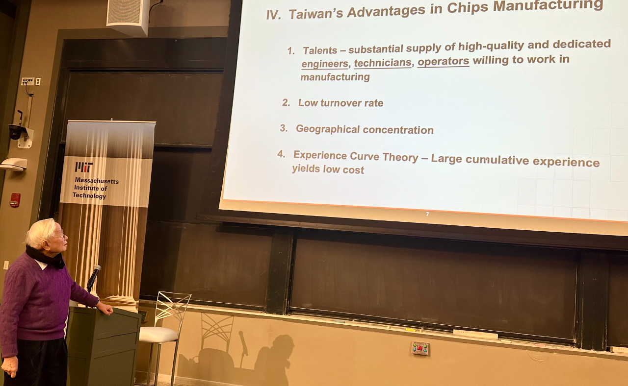 台積電創辦人張忠謀24日回到母校麻省理工學院演講,分享半導體產業在過去70多年來的發展及台積電成功的秘訣。