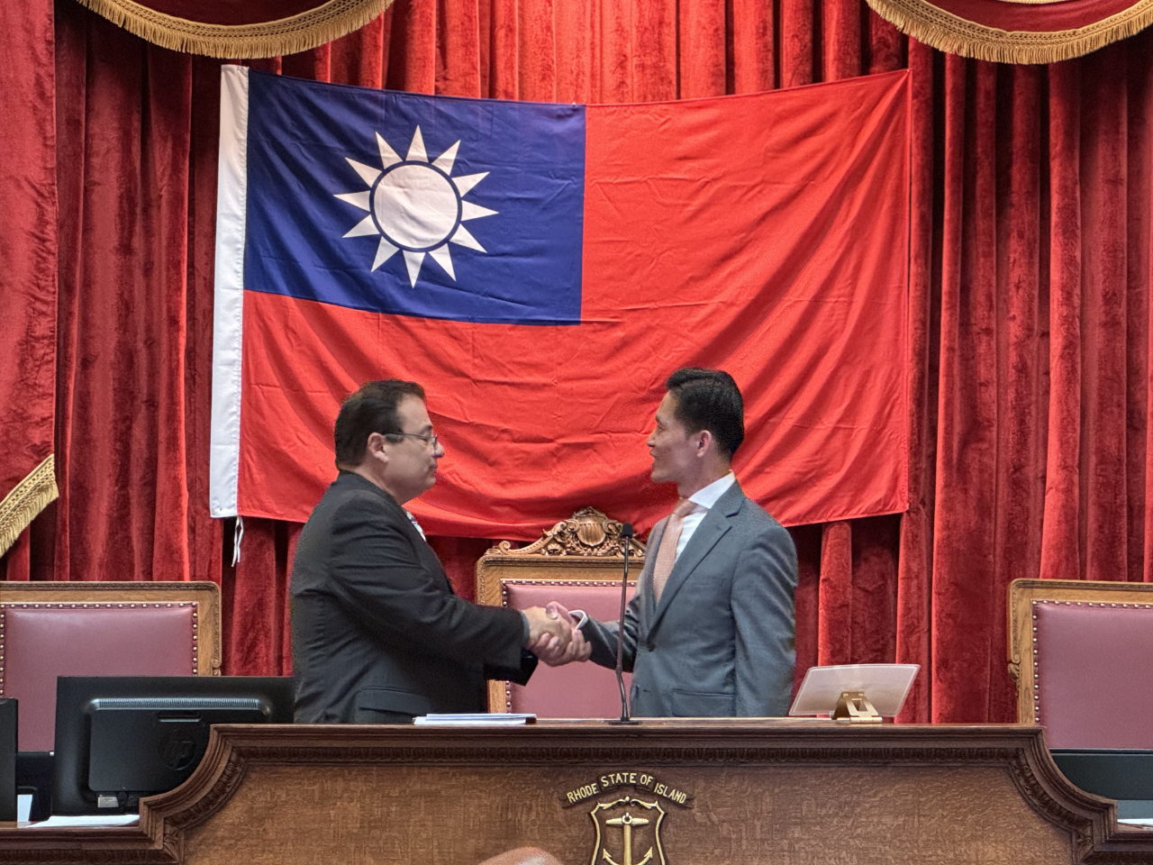 羅德島州參、眾議會於4月11日分別無異議通過決議,重申台灣與羅州友誼,支持台灣參與國際組織及紀念台灣關係法立法45週年並祝賀我520正副總統就職大典。廖處長應邀赴參、眾會議場見證並致詞,此係參議會首度邀請本處處長致詞。