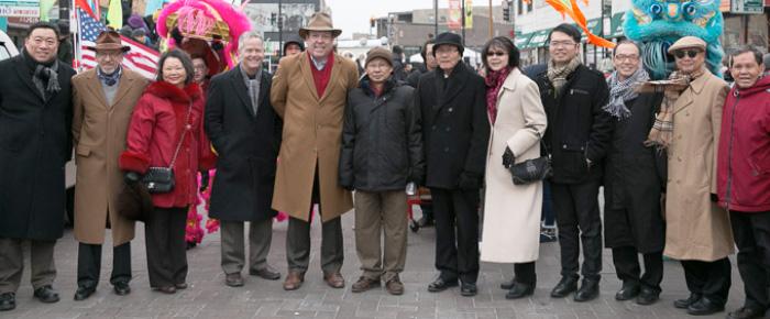 芝城北華埠春節遊行本(2)月4日(週六)下午1時在亞偕街(Argyle Street)熱鬧登場,駐芝加哥辦事處副處長陳瓊玉偕張組長志強及僑教中心主任王偉讚出席活動,芝市第48區區長Harry Osterman、第46區區長James Cappleman也到場向民眾拜年。