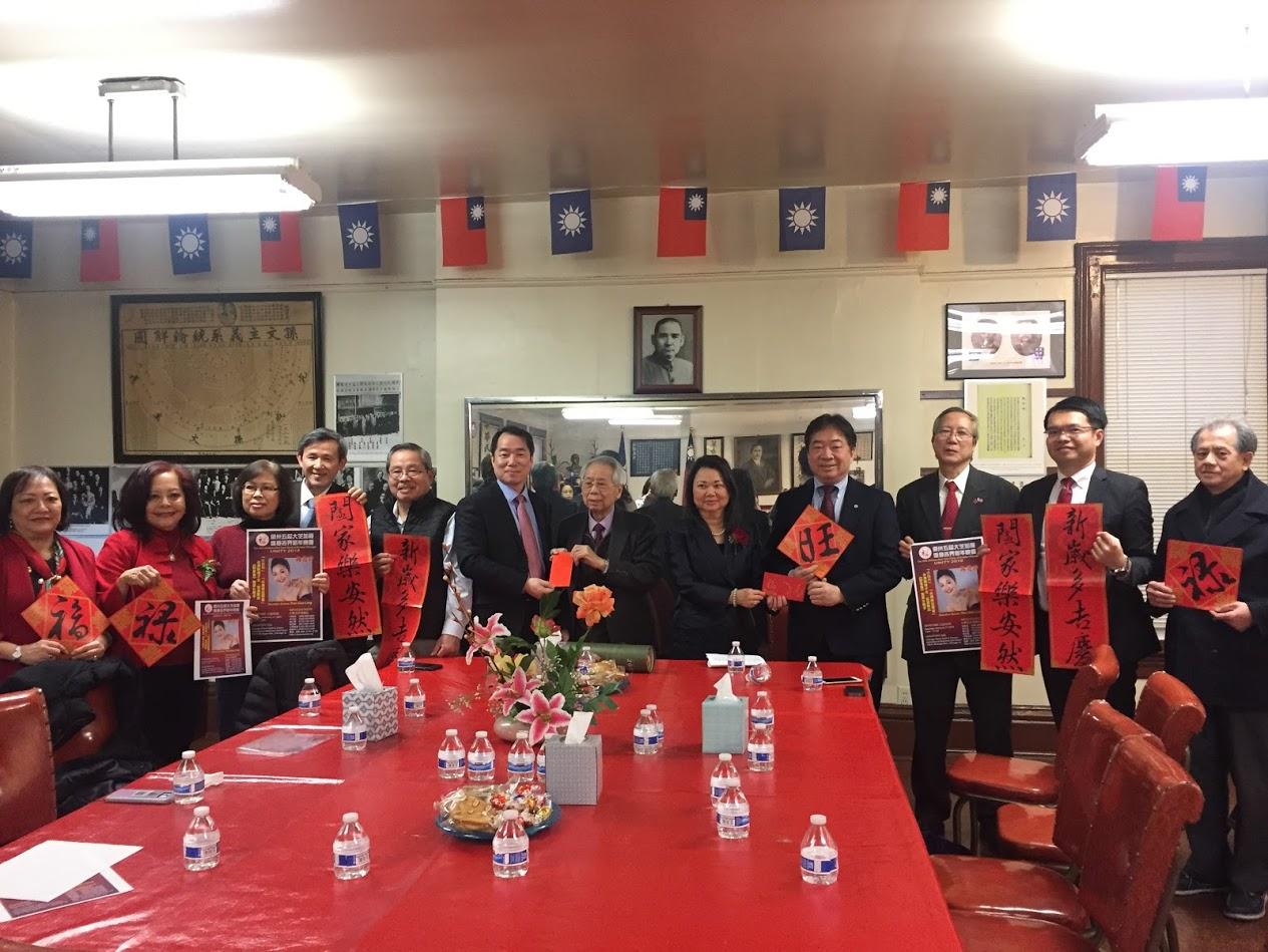 駐芝加哥臺北經濟文化辦事處處長何震寰偕駐處及僑教中心同仁在新年開始第1天參加芝加哥中華會館舉行的慶祝中華民國107年元旦升旗及主持中華會館主席幹部監交典禮,並由中華會館主席黃于紋、董事長陳達偉、多位僑務榮譽職人員,以及大芝加哥新年晚會籌備會正、副總幹事等僑領陪同,一連三天走訪芝加哥南、北華埠傳統僑社拜年。