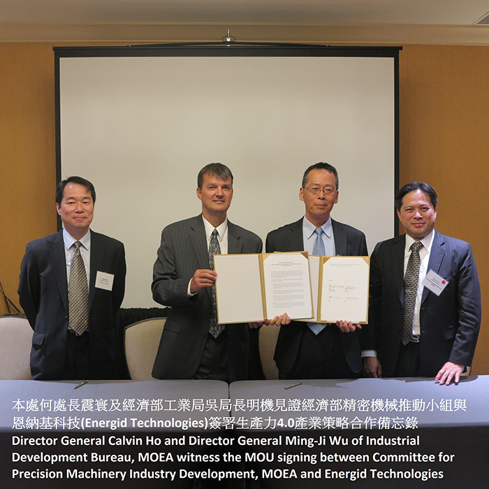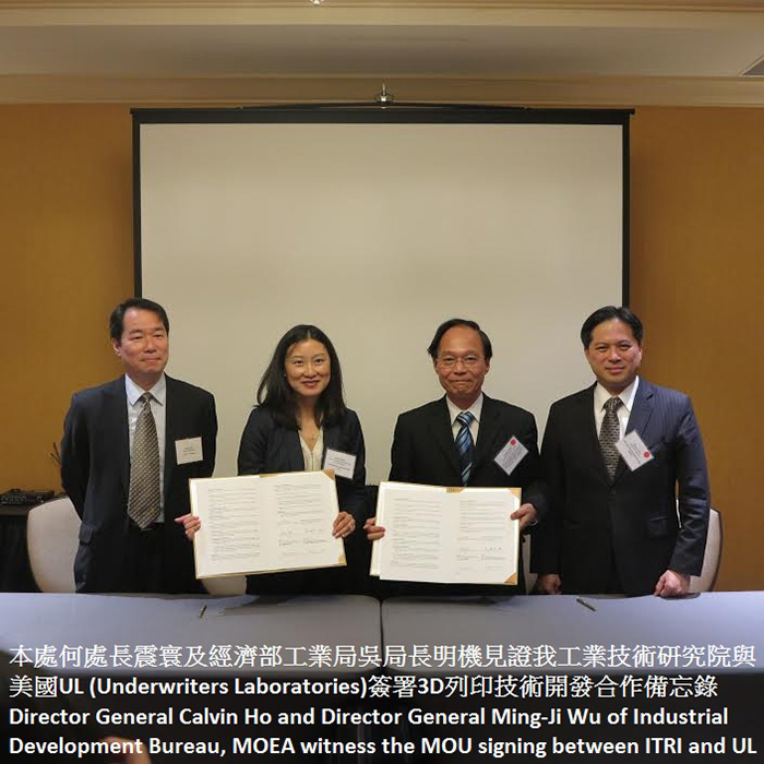 本處何震寰處長出席本活動致詞時表示,台灣在全球高科技產業供應鏈中所扮演之重要角色,且我為伊州在亞洲之重要出口市場,雙方產業合作將有助於進一步強化台美雙邊經貿與投資關係;經濟部工業局局長吳明機說明與UL及Energid Technologies簽署合作備忘錄對我國在推動生產力4.0產業策略發展計劃及3D列印技術與提升關鍵技術之重要性;商務部官員則強調我國去年已躍升為美第10大貿易夥伴,與美貿易關係穩健密切;伊州經發廳官員則透過該州投資環境之介紹盼與我國產業建立更多商機。本處何震寰處長及工業局吳明機局長並於會中見證由我工研院、塑膠中心及經濟部精密機械推動小組分別與UL總公司、UL Taiwan及Energid Technologies公司簽署3 項合作備忘錄儀式。
