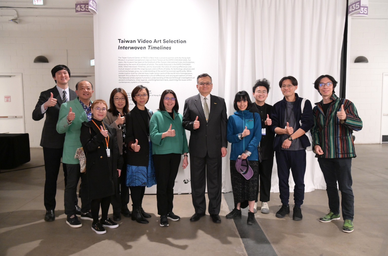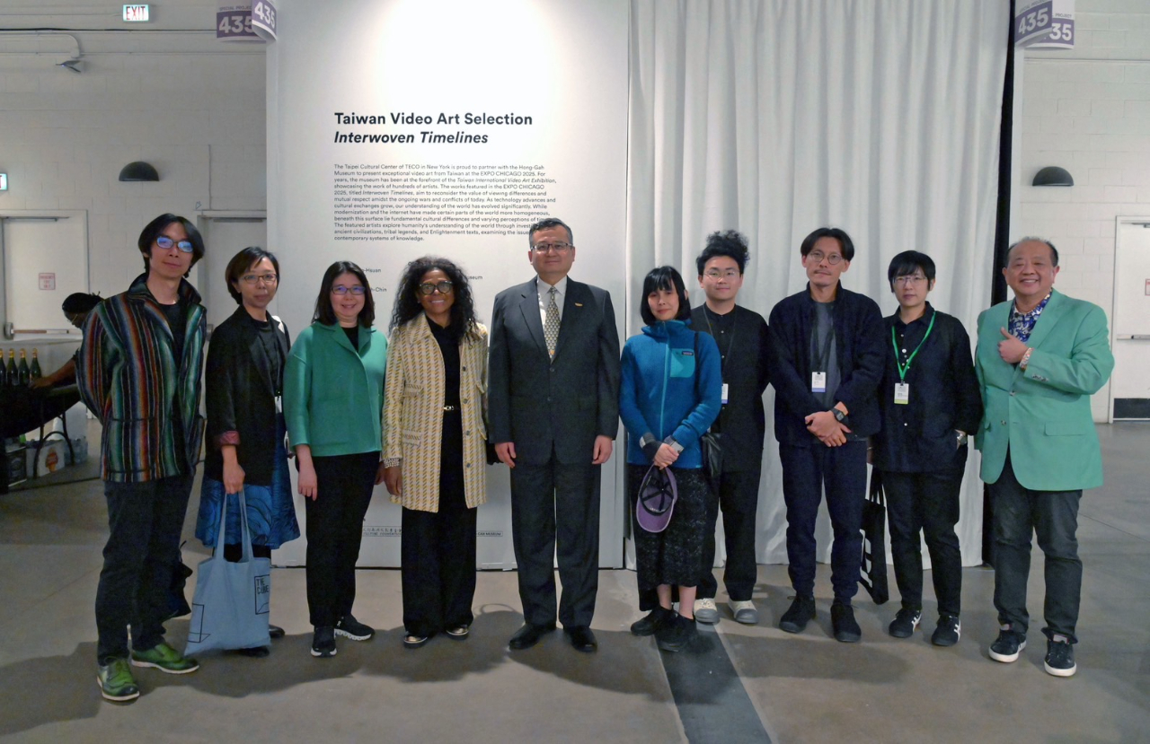 在駐紐約台北文化中心、鳳甲美術館及芝加哥藝術博覽會(EXPO CHICAGO)三方聯手推動下,台灣錄像作品主題館於4月24日至27日首次在芝加哥藝術博覽會以主題「台灣錄像播映選-交織的時間軸」展出,駐芝加哥辦事處類總領事延峰本(24)日偕駐處同仁出席力挺,為本次展出的台灣藝術家團隊加油打氣,並由紐文中心張主任惠君陪同,駐芝加哥辦事處也邀請各國駐芝加哥總領事、伊利諾州與芝加哥市政府官員以及芝市僑、商界領袖等賓客共襄盛舉,鳳甲美術館葉館長佳蓉也與本次展出的台灣藝術家陳亮璇、吳思嶔等親赴芝加哥藝博會現場推廣台灣藝術作品。
