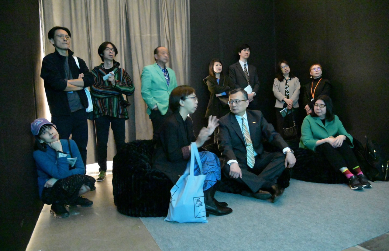圖說五:台灣藝術家陳亮璇(中)向類總領事(右1)說明她創作錄像藝術作品《呼吸》的理念。
