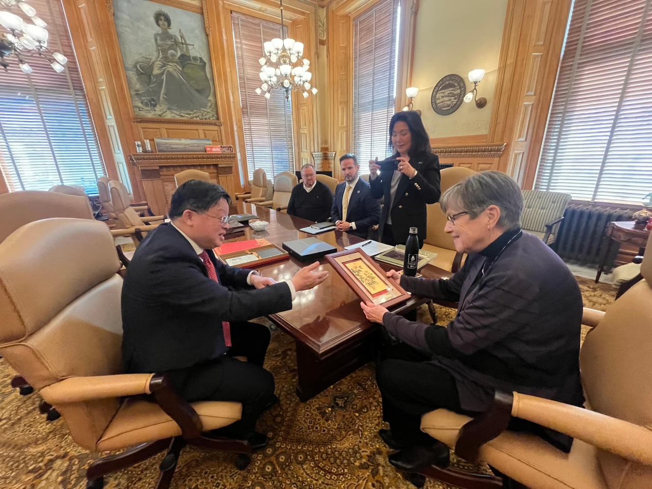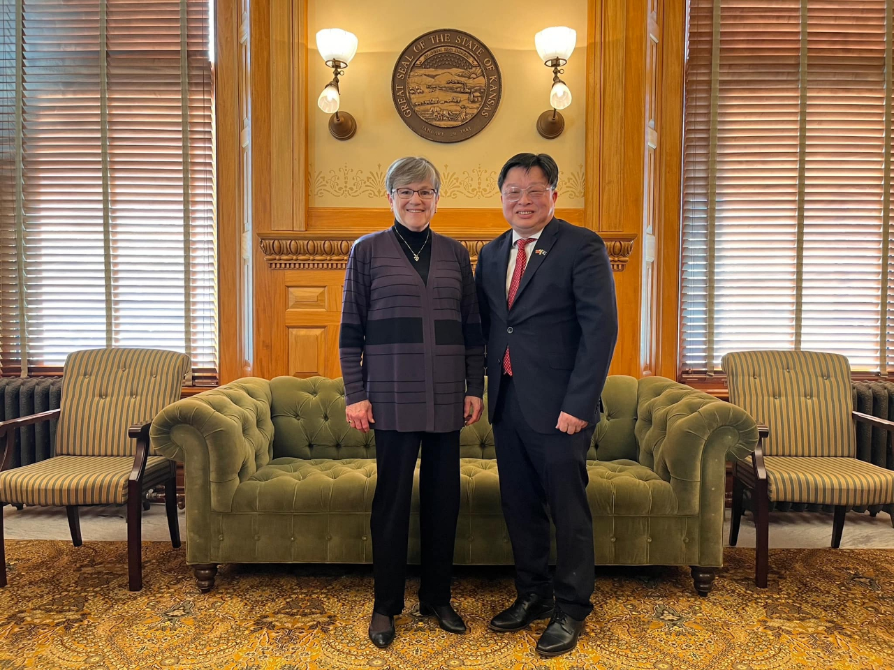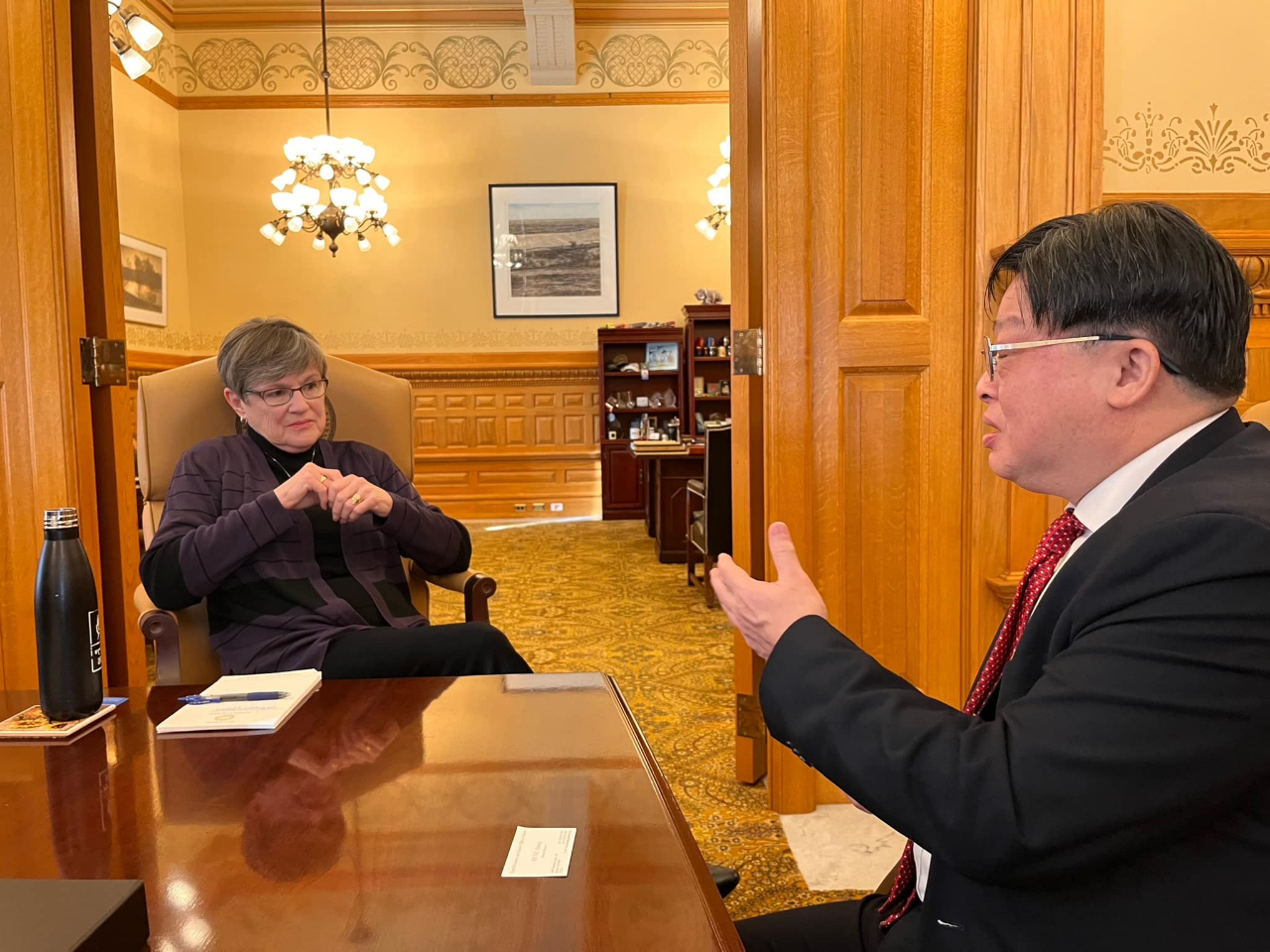 黃世昌處長很榮幸拜會堪薩斯州凱莉(Laura Kelly)州長,並就如何促進台堪產業、學術、科技與文化交流廣泛交換意見,雙方都期許台堪互為最值得信賴的合作夥伴。