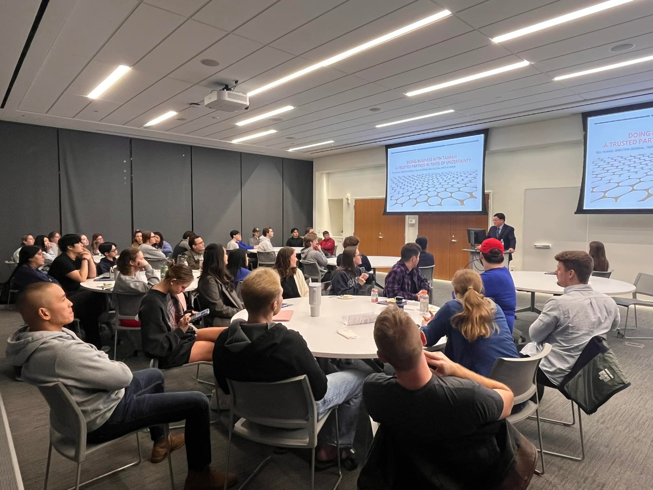 黃處長強調台美更緊密經貿合作有助全球產業供應鏈的穩定和永續發展,他也鼓勵堪大商學院同學到台灣旅學,了解台灣優美的風土人情,並可建立國際商務人脈。