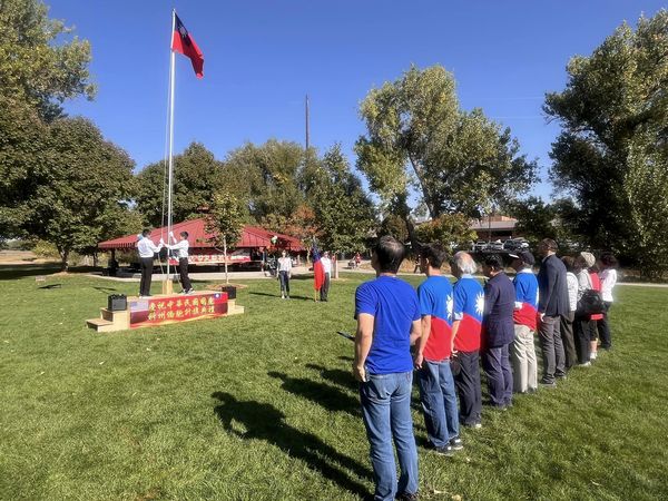 愛台灣的僑胞們在十月秋高氣爽的週末歡聚舉行升旗典禮,唱國歌看著青天白日滿地紅國旗冉冉上升,我們為中華民國台灣這塊土地感到驕傲