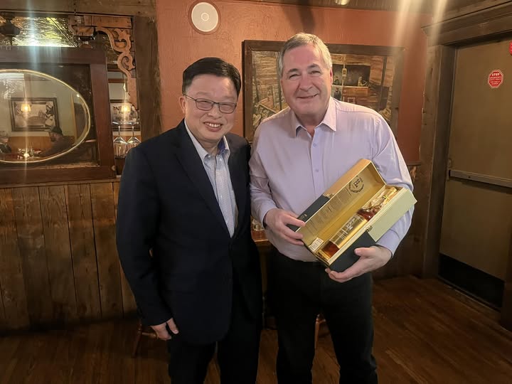 好東西值得與好朋友分享,黃處長向Goehring廳長介紹噶瑪蘭威士忌,台灣之光在寒冷冬夜裡暖身又暖心~
