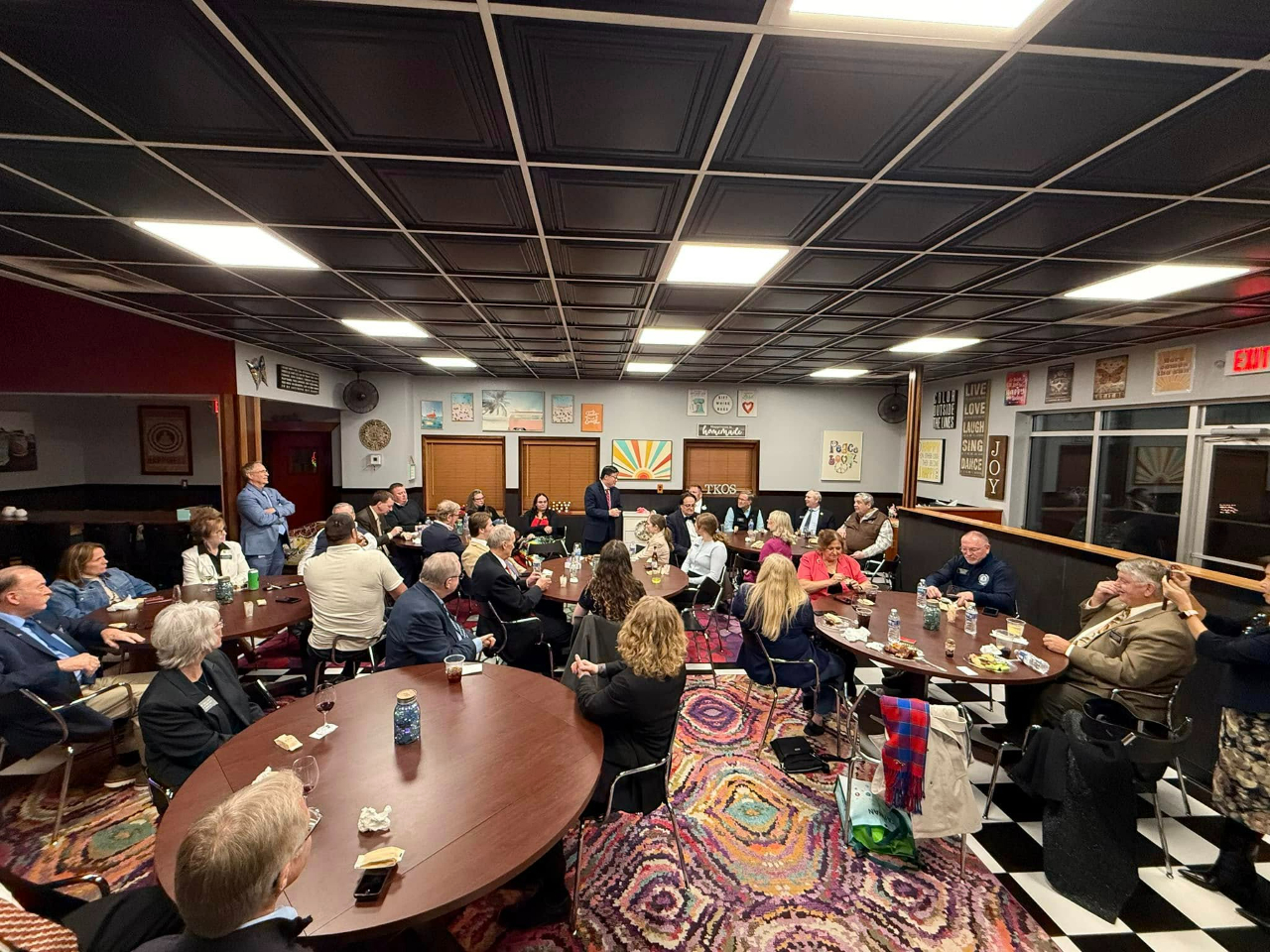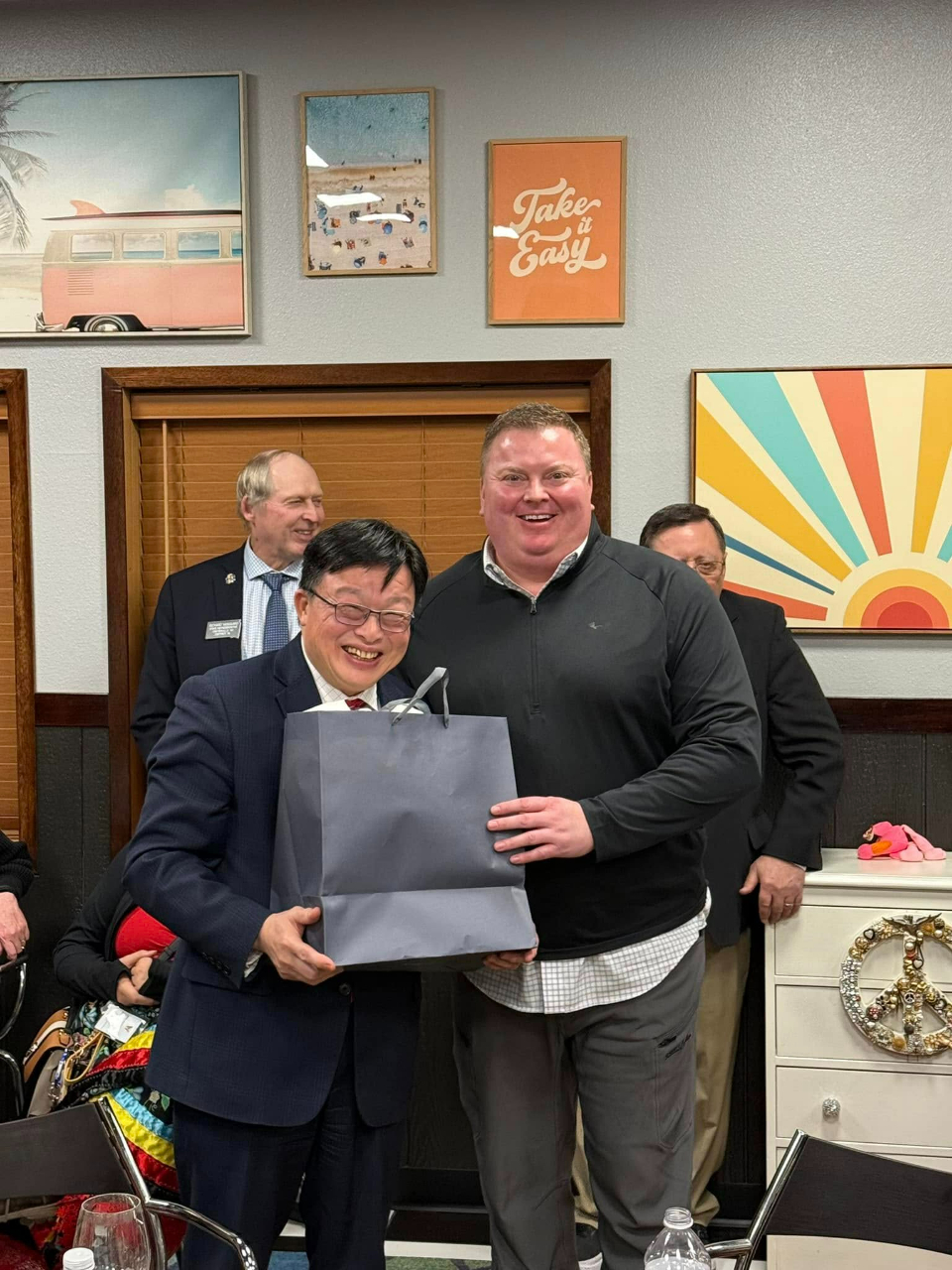 黃世昌處長昨日驅車來到南達科他州首府皮爾轄訪,很高興與南達州參議員Larry Zikmund 偕州議會領袖逾70人齊聚一堂,席間與宴參眾議員友人對黃處長任內勤走南州,致力促進台灣和該州經貿、教育等交流與合作表達肯定,及依依不捨之意,最後由州參議院代議長卡爾(Chris Karr)參議員代表致贈黃處長離任禮物。