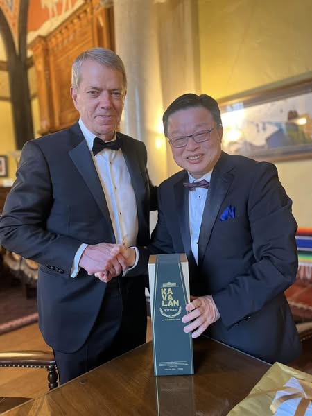 黃處長於州慶晚宴前拜會內州長皮倫(Jim Pillen),討論台內經貿合作願景,並向皮倫州長介紹產自好山好水宜蘭的噶瑪蘭威士忌。