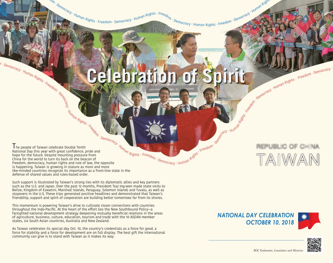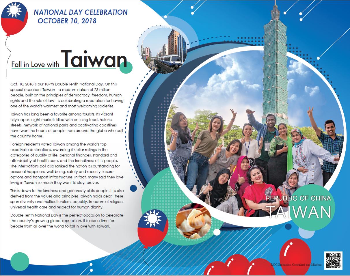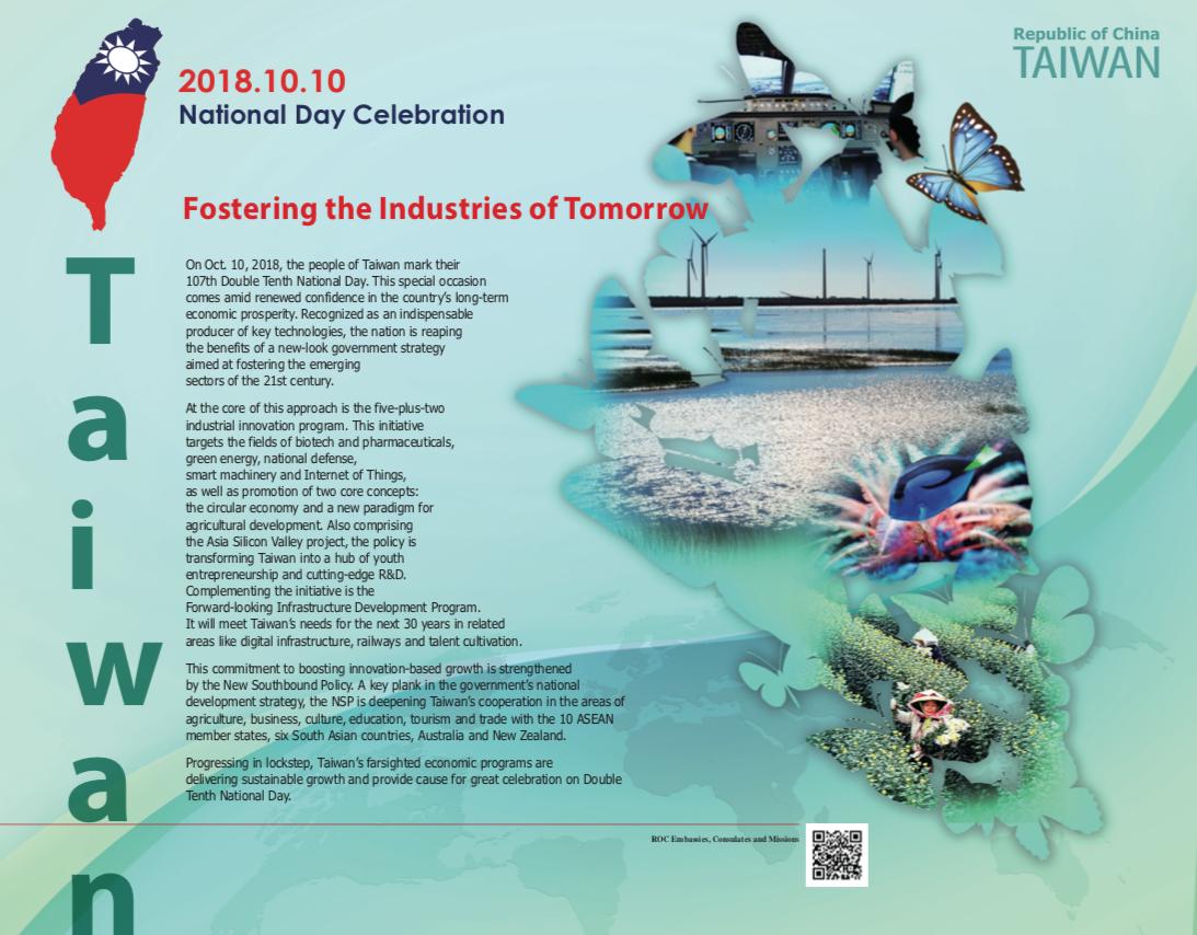 國慶日即將來到,外交部特別製作三款國慶文宣:包括「台灣之最」篇、「踏實外交」篇及「創新經濟」篇,將刊登於國際媒體,以推廣台灣優質形象。