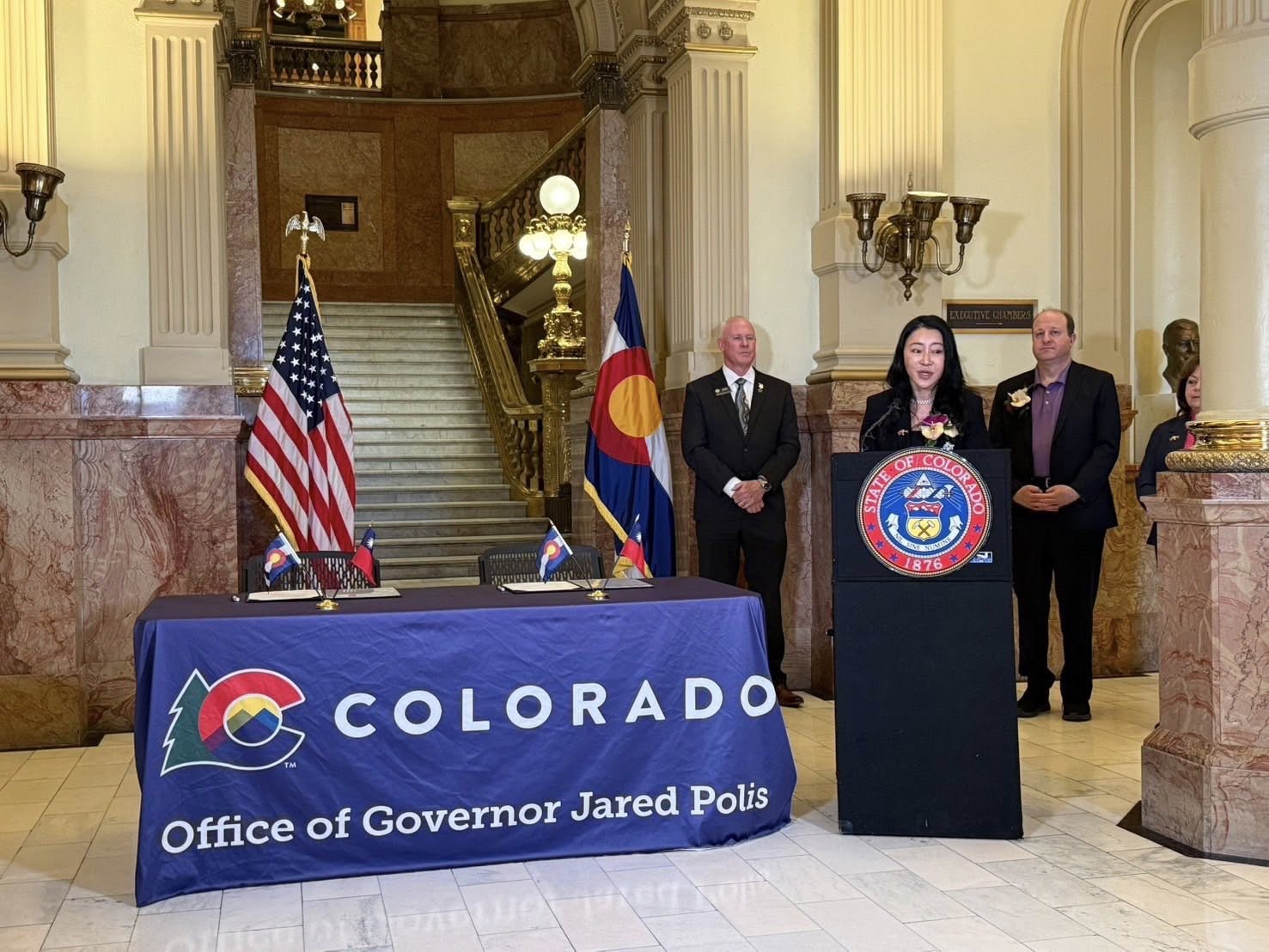 The MOU was signed by Director General Debby Huang and Governor Jared Polis, in the presence of state legislative leaders, government officials, members of the media, and community representatives.